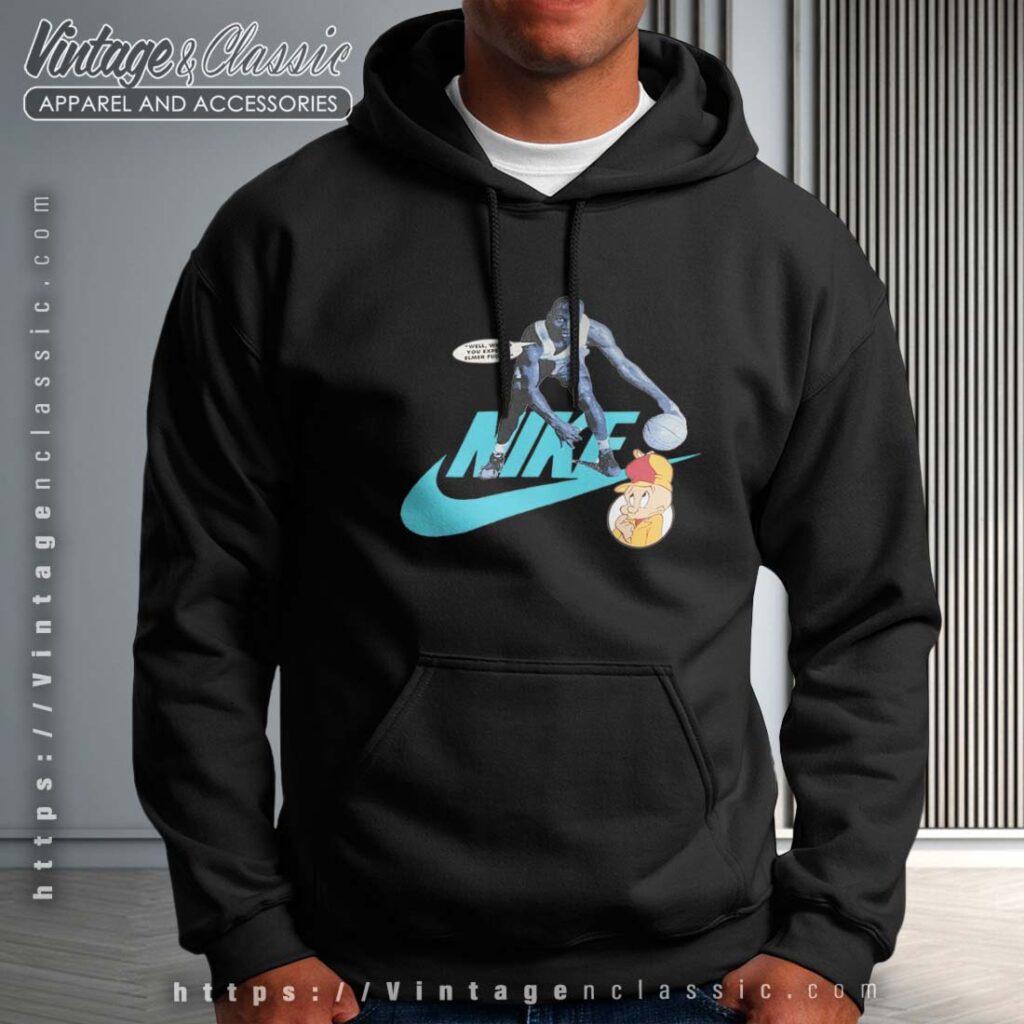 The shirt’s graphic design showcases the beloved Bugs Bunny in a dynamic basketball pose, perfectly capturing his mischievous spirit. Accompanied by the sleek Nike logo, this design blends humor with athletic style effortlessly. The vibrant colors and detailed artwork bring Bugs Bunny to life, making this shirt a fun and fashionable tribute to the world of basketball and animation.