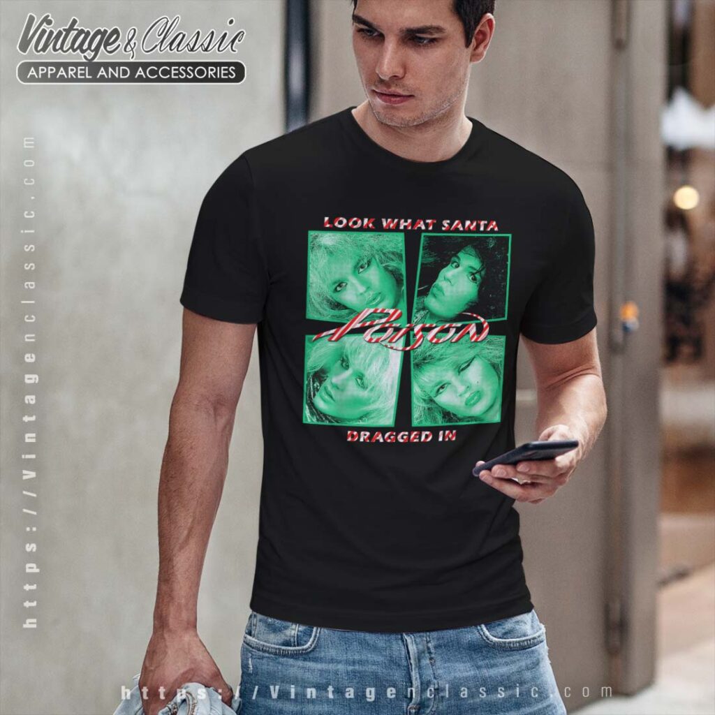 This is a vintage-style graphic tee featuring a playful and festive design. The image is a humorous take on the classic “Santa’s coming to town” theme. The shirt is likely to be popular with fans of classic rock and pop culture.