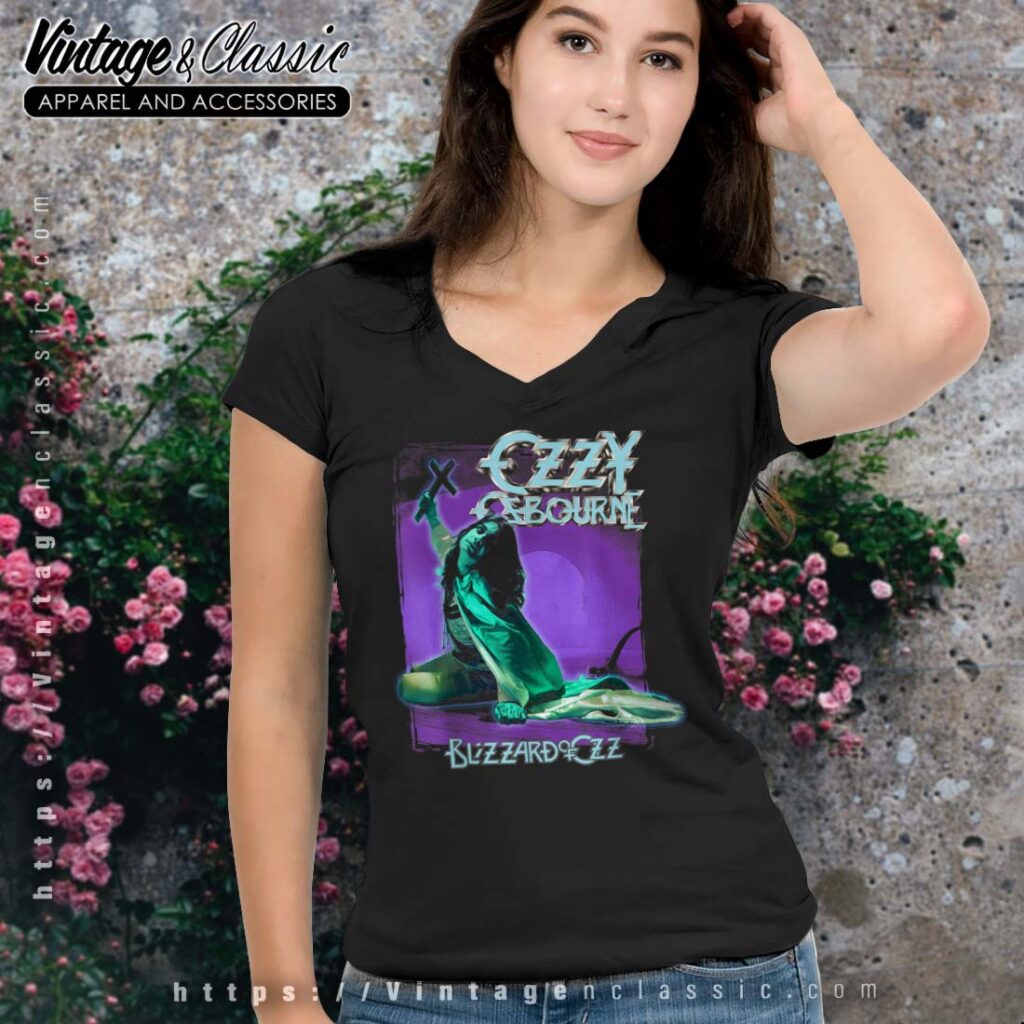This is a limited-edition, vintage-style t-shirt featuring a design inspired by Ozzy Osbourne’s iconic album “Blizzard of Ozz.” The shirt is a tribute to the legendary rockstar’s musical legacy and his unique artistic style.