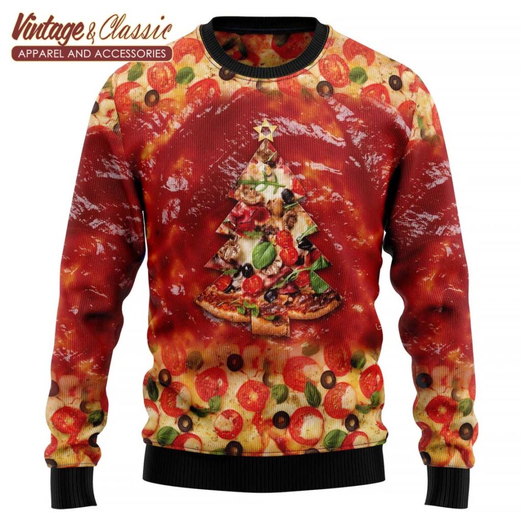Whether you’re a pizza aficionado or just looking for a unique and fun Christmas sweater, this design is sure to be a hit.