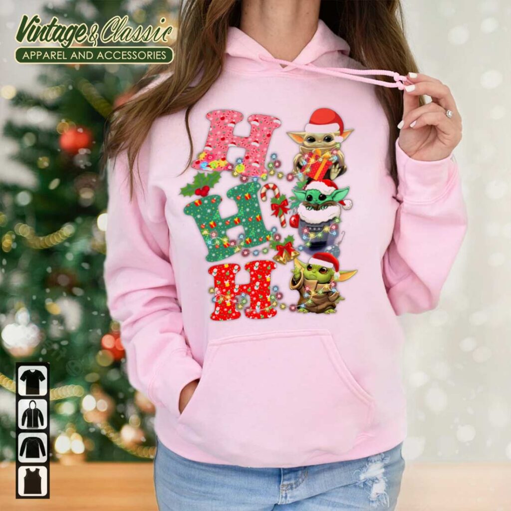 This is a festive and adorable shirt for any Star Wars fan, especially those who adore Baby Yoda! The design features the beloved character “Grogu” from The Mandalorian, decked out in a classic Christmas sweater with the iconic “Ho Ho Ho” message. It’s a perfect way to celebrate the holiday season with a touch of Star Wars magic.