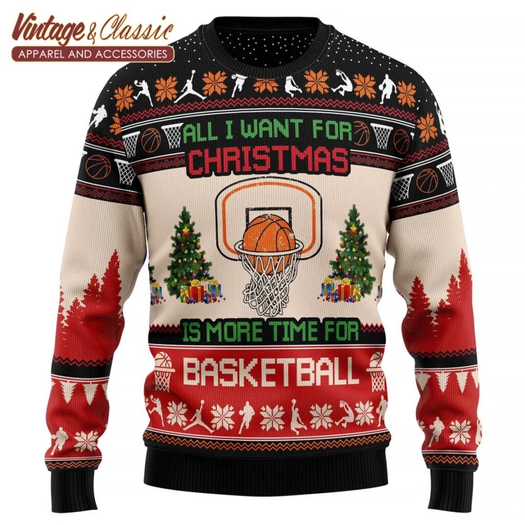 This isn’t just any Christmas sweater, this is a statement piece for the basketball enthusiast. The “Basketball Ugly Christmas Sweater” is a festive way to show off your love for the game. With its iconic basketball design and the playful “All I Want For Christmas Is More Time For Basketball” message, this sweater is perfect for holiday gatherings, game nights, or just cozying up on the couch with a festive drink.