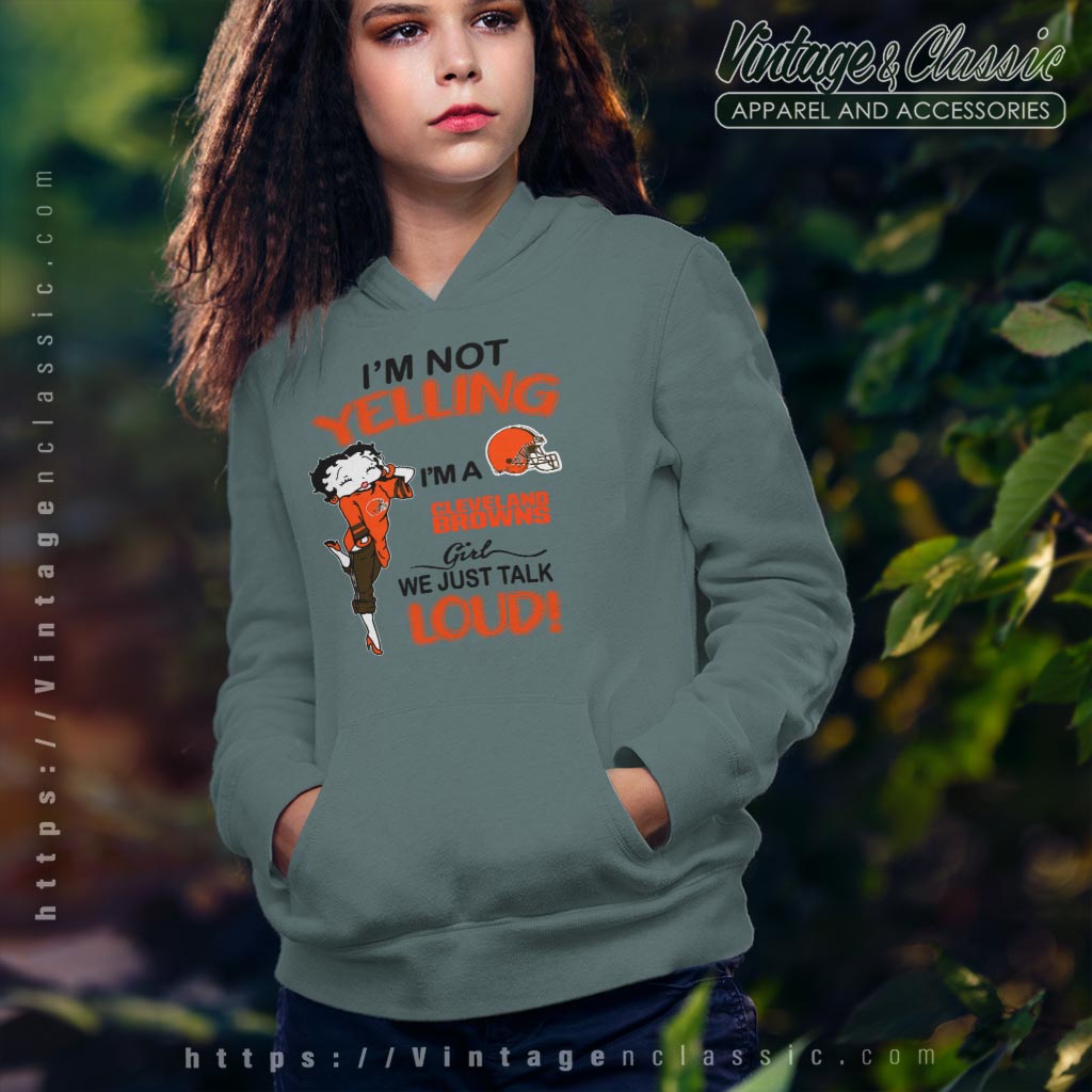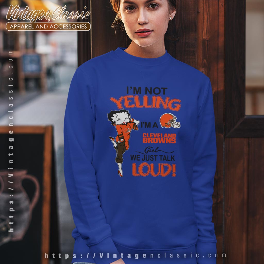 Whether you’re headed to a game, a viewing party, or just out and about, the Betty Boop I’m Not Yelling I’m A Browns Girl We Just Talk Loud Shirt is your go-to choice. It’s an ideal gift for any passionate Browns fan who loves to express their team spirit in a fun and stylish way. Show your true colors and let your voice be heard!