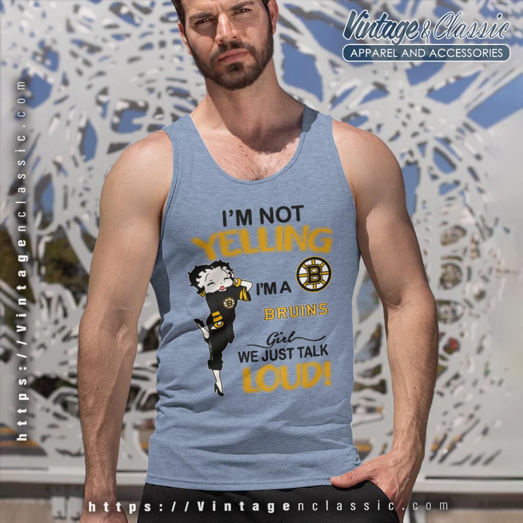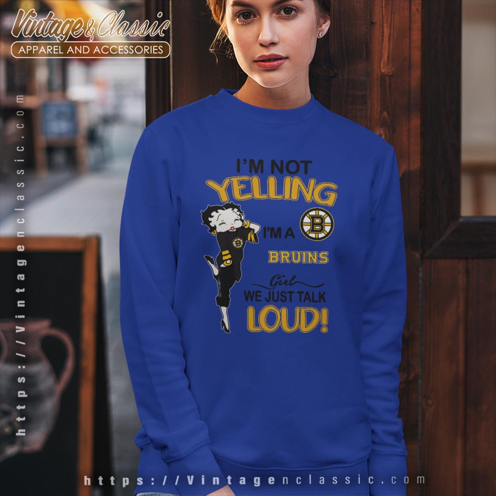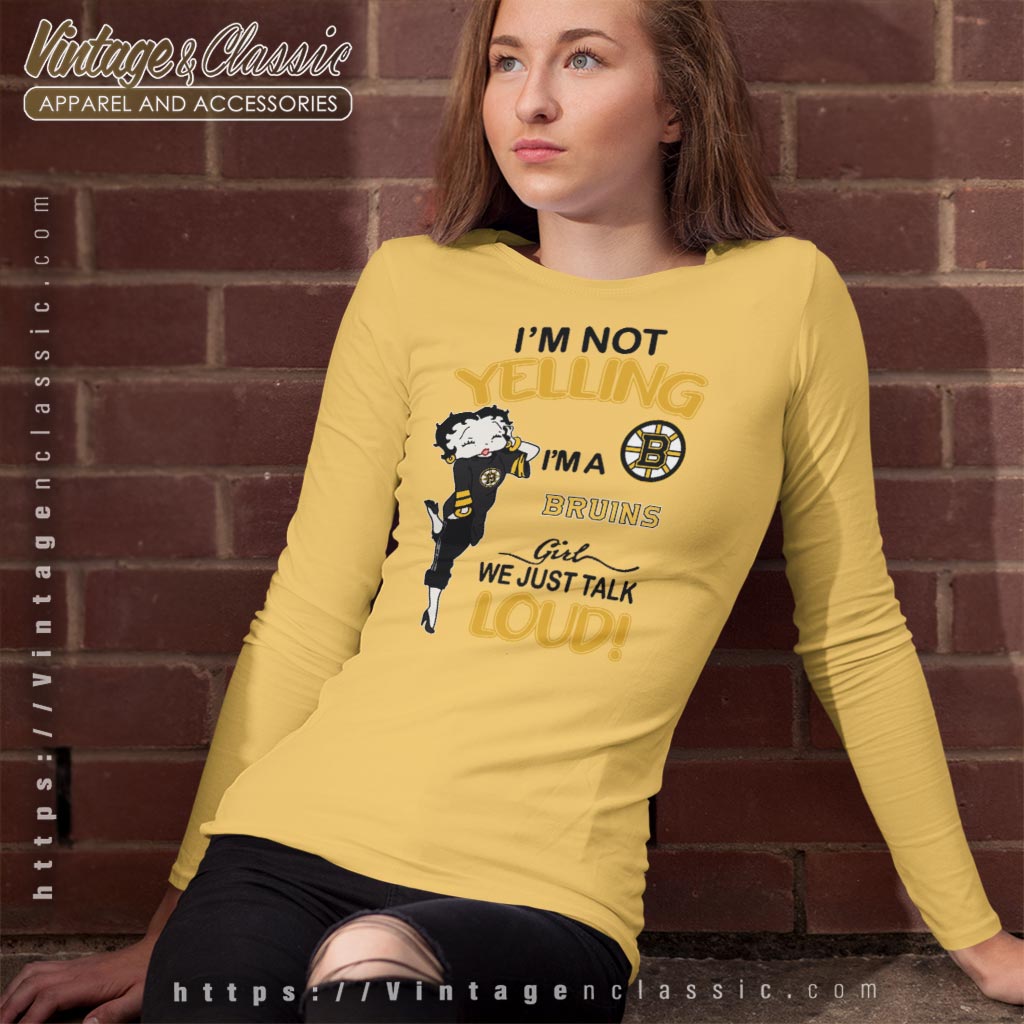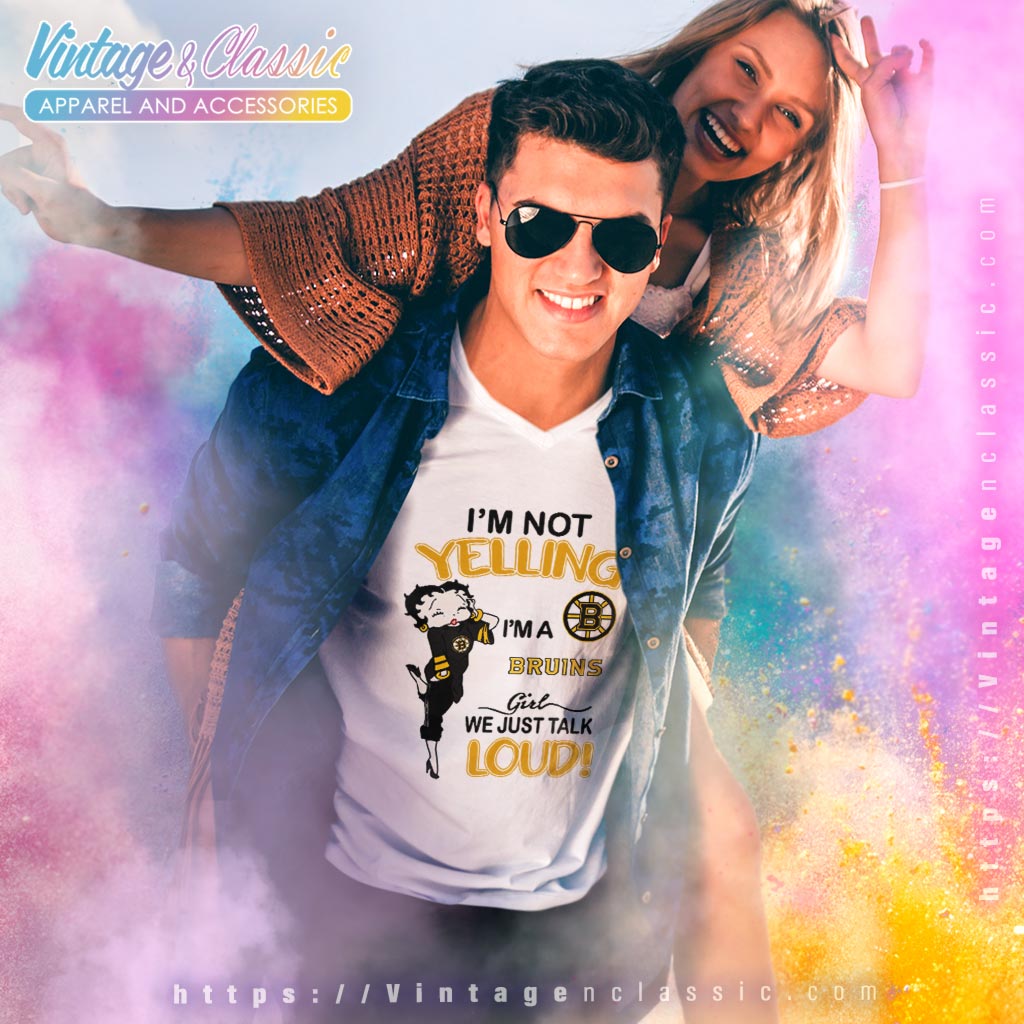 This shirt is ideal for die-hard Bruins fans who want to make a statement at games, watch parties, or any casual outing. Whether you’re at the rink or watching from home, the “Betty Boop I’m Not Yelling I’m A Bruins Girl We Just Talk Loud Shirt” delivers a message of unwavering support and excitement. It’s not just apparel; it’s a badge of honor for every enthusiastic Bruins girl!