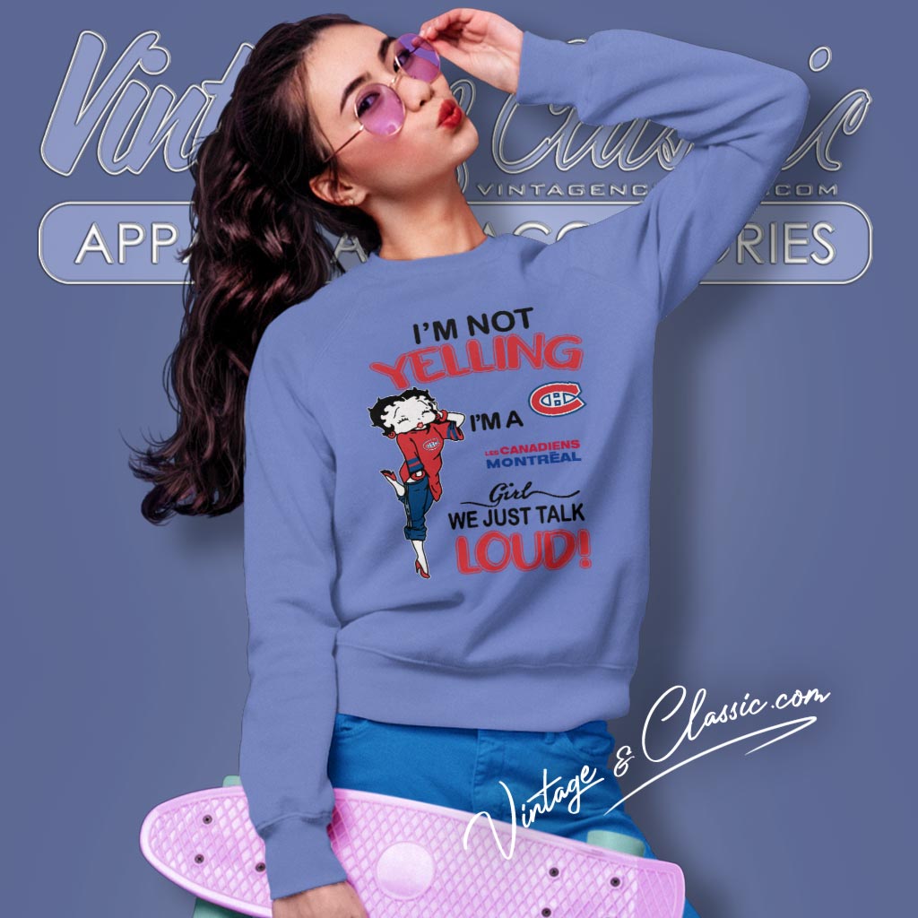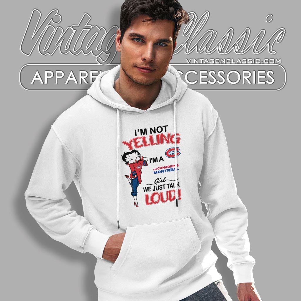 Showcase your love for the Montreal Canadiens with a fun twist! The “Betty Boop I’m Not Yelling I’m A Canadiens Girl We Just Talk Loud Shirt” is perfect for passionate fans who want to express their team spirit with personality. This eye-catching tee incorporates the iconic Betty Boop character, adding a playful flair to any Canadiens fan’s wardrobe.