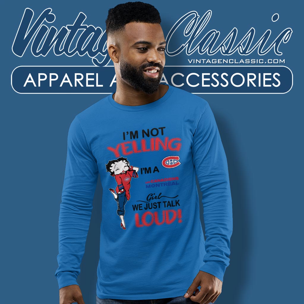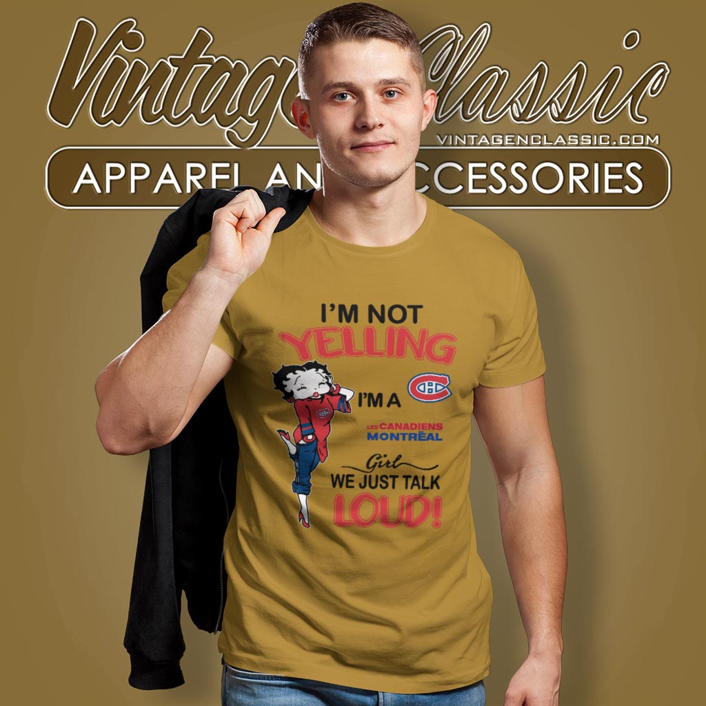 Whether you’re cheering at the game or hanging out with fellow fans, the “Betty Boop I’m Not Yelling I’m A Canadiens Girl We Just Talk Loud Shirt” is your go-to choice. It’s designed for those who bleed Canadiens colors and aren’t afraid to show it. Wear it to games, watch parties, or casual outings to proudly display your loyalty!