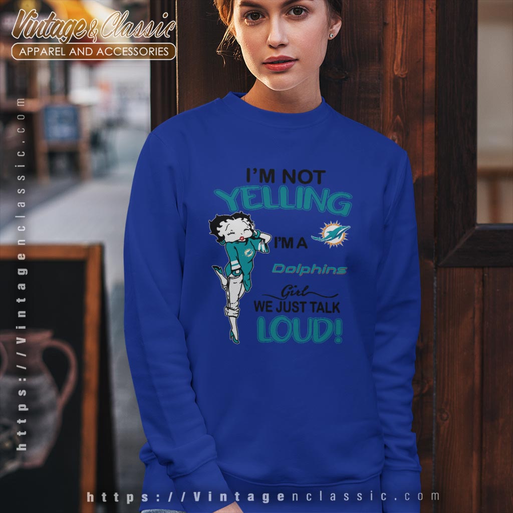 Be the first to review “Betty Boop Im Not Yelling Im A Dolphins Girl We Just Talk Loud Shirt”