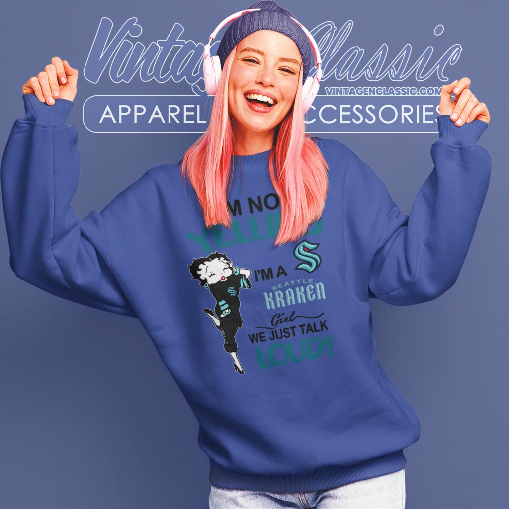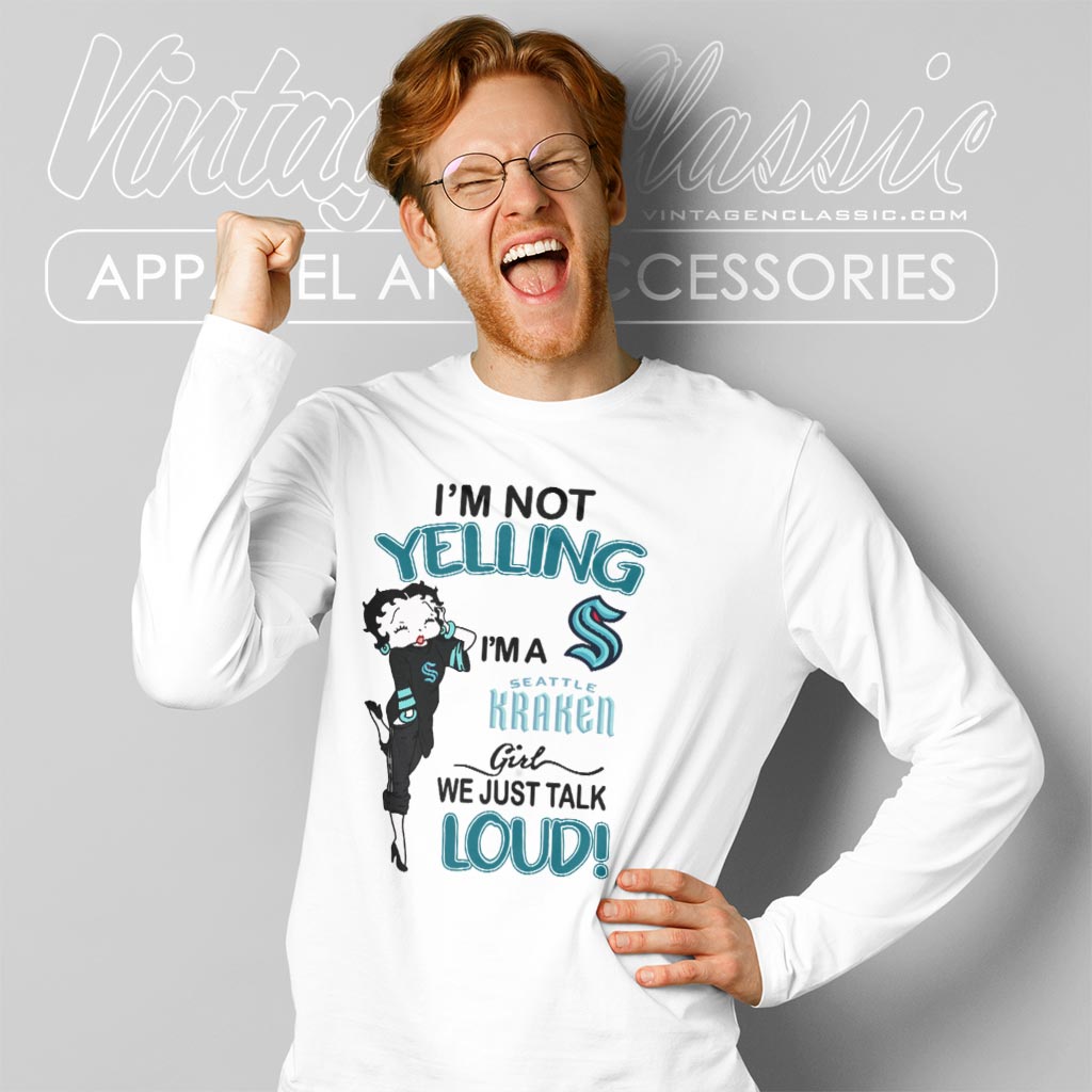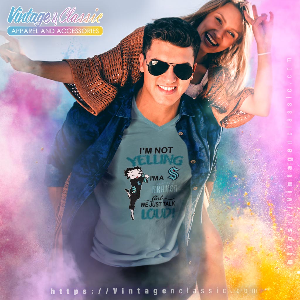 Whether you’re heading to a game or just hanging out with friends, the Betty Boop Im Not Yelling Im A Kraken Girl We Just Talk Loud Shirt is your go-to choice. Ideal for fans who love to wear their passion on their sleeve, this shirt is a great conversation starter and a fun way to connect with fellow Kraken enthusiasts.