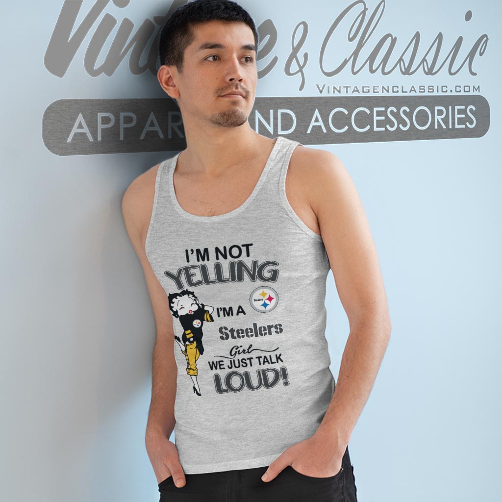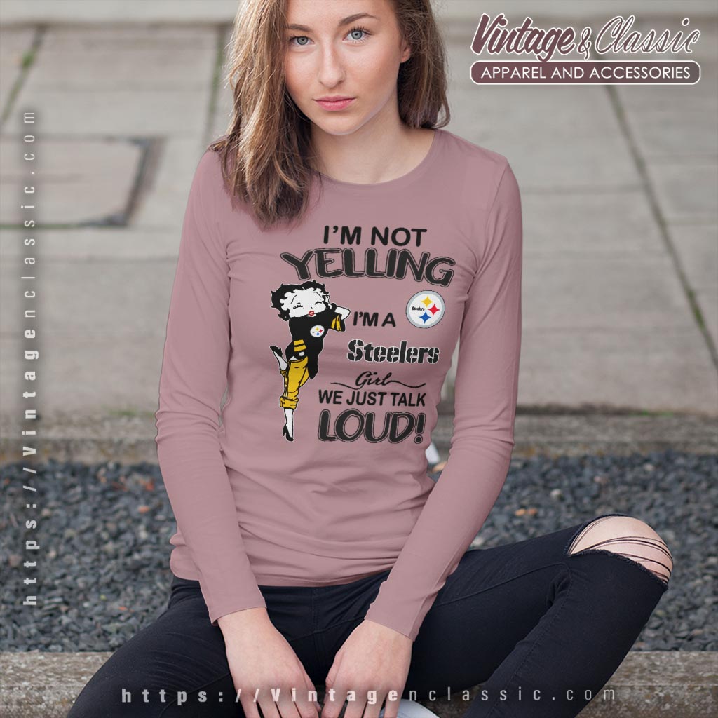 Celebrate your love for the team with the Betty Boop I’m Not Yelling I’m A Steelers Girl We Just Talk Loud Shirt. Perfect for fans who want to express their Steelers pride in a fun and lively way. This shirt is a must-have for anyone who loves to support the Steelers with a touch of personality and flair.