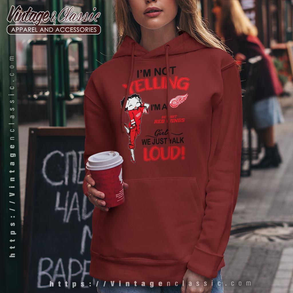 Embrace your love for the Detroit Red Wings with this eye-catching Betty Boop shirt. Perfect for fans who wear their hearts on their sleeves, this tee proudly declares, “I’m not yelling, I’m a Wings girl,” capturing the vibrant spirit of hockey enthusiasts. Whether you’re at a game, a watch party, or just out and about, let your passion for the Red Wings shine through with this unique apparel.