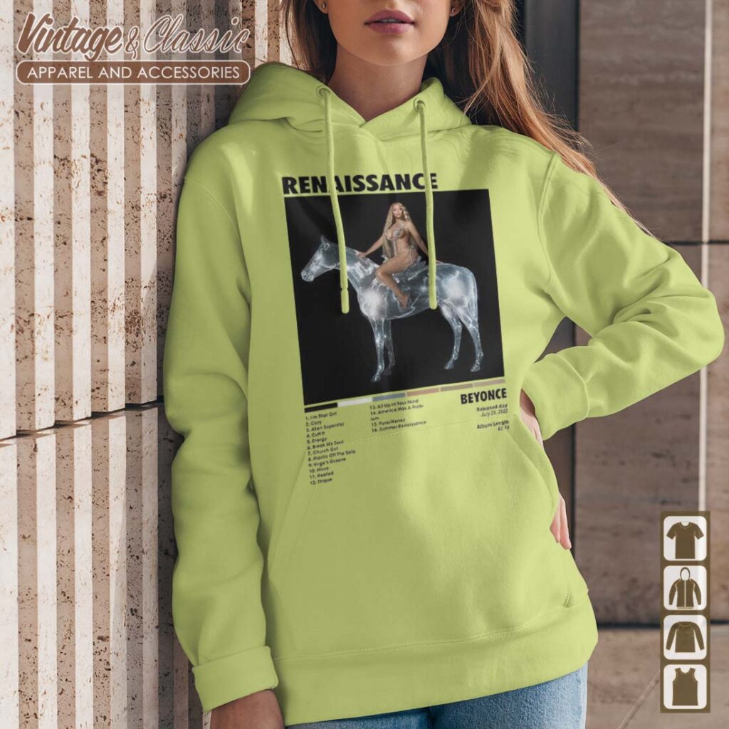 The “Beyonce Renaissance Tracklist T-Shirt” is a must-have for any Beyhive fan! This stylish and unique piece of apparel features a vibrant design showcasing the tracklist from her critically acclaimed album “Renaissance.”