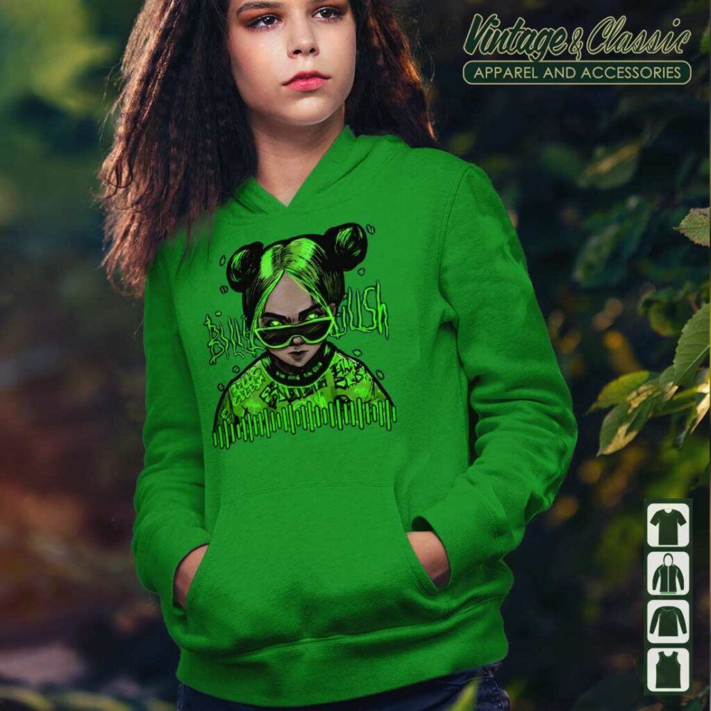 The design itself is iconic. The vibrant green logo, featuring Billie’s signature style and a touch of her playful personality, is instantly recognizable and makes a bold statement. Whether you’re rocking it at a concert, hanging out with friends, or just chilling at home, this hoodie is sure to turn heads.