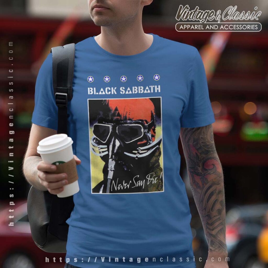 The “Black Sabbath Never Say Die” poster shirt is a tribute to the legendary heavy metal band, Black Sabbath. This iconic design features a striking image of the band’s iconic logo, “Never Say Die,” which is a powerful and evocative symbol of their enduring legacy. The shirt is a must-have for any die-hard Sabbath fan, offering a stylish and nostalgic way to show their passion for the band.