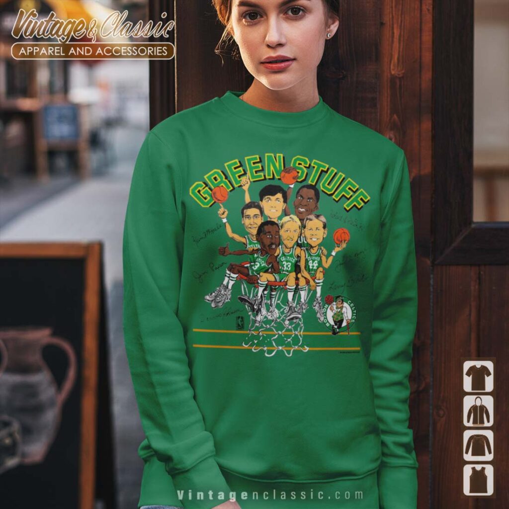This Boston Celtics caricature green stuff shirt is a unique and fun way to show your team spirit. The image features a classic caricature of a Boston Celtics player, likely a beloved legend or a current star. The “Green Stuff” element suggests a playful and nostalgic vibe, referencing the team’s iconic green color and the “Green Stuff” era of the team’s history.