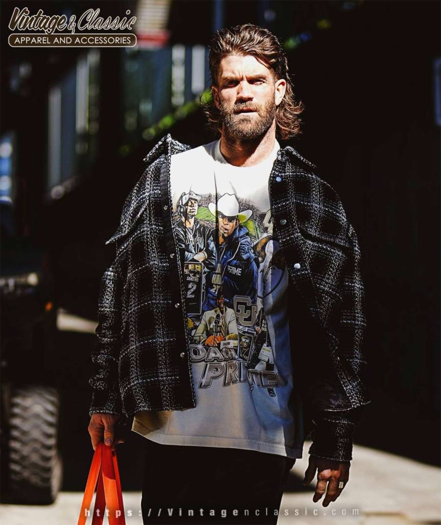 Bryce Harper, the renowned baseball star, is making waves with his latest collaboration with Coach Prime. This isn’t just any ordinary shirt; it’s a statement piece that embodies the spirit of both athletes and their shared passion for success. The “Bryce Harper Coach Prime Shirt” is a testament to their shared drive and ambition, a symbol of their dedication to excellence.