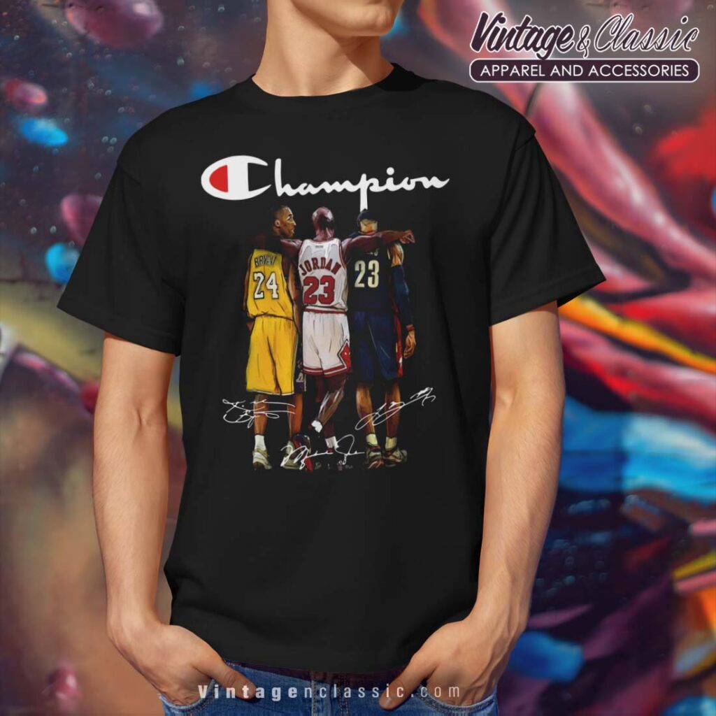 The Champion LeBron James Kobe Bryant Michael Jordan Signatures Shirt is a highly sought-after piece for basketball enthusiasts and fans of these legendary athletes. This shirt is a tribute to three icons of the game, each with a unique legacy and impact on the sport. The shirt features signatures from LeBron James, Kobe Bryant, and Michael Jordan, making it a collectible item for any serious fan.