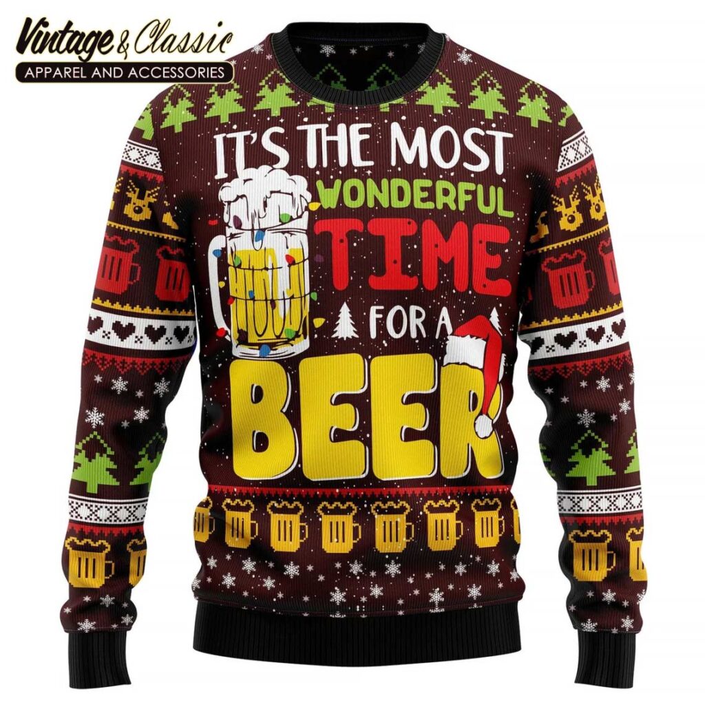 Whether you’re attending an ugly sweater party or simply enjoying a cozy night in, this Christmas Wonderful Time For A Beer Ugly Christmas Sweater is the perfect choice. It’s a great gift for friends or family who appreciate a good laugh and a great beer. Celebrate the holiday season in style and comfort!