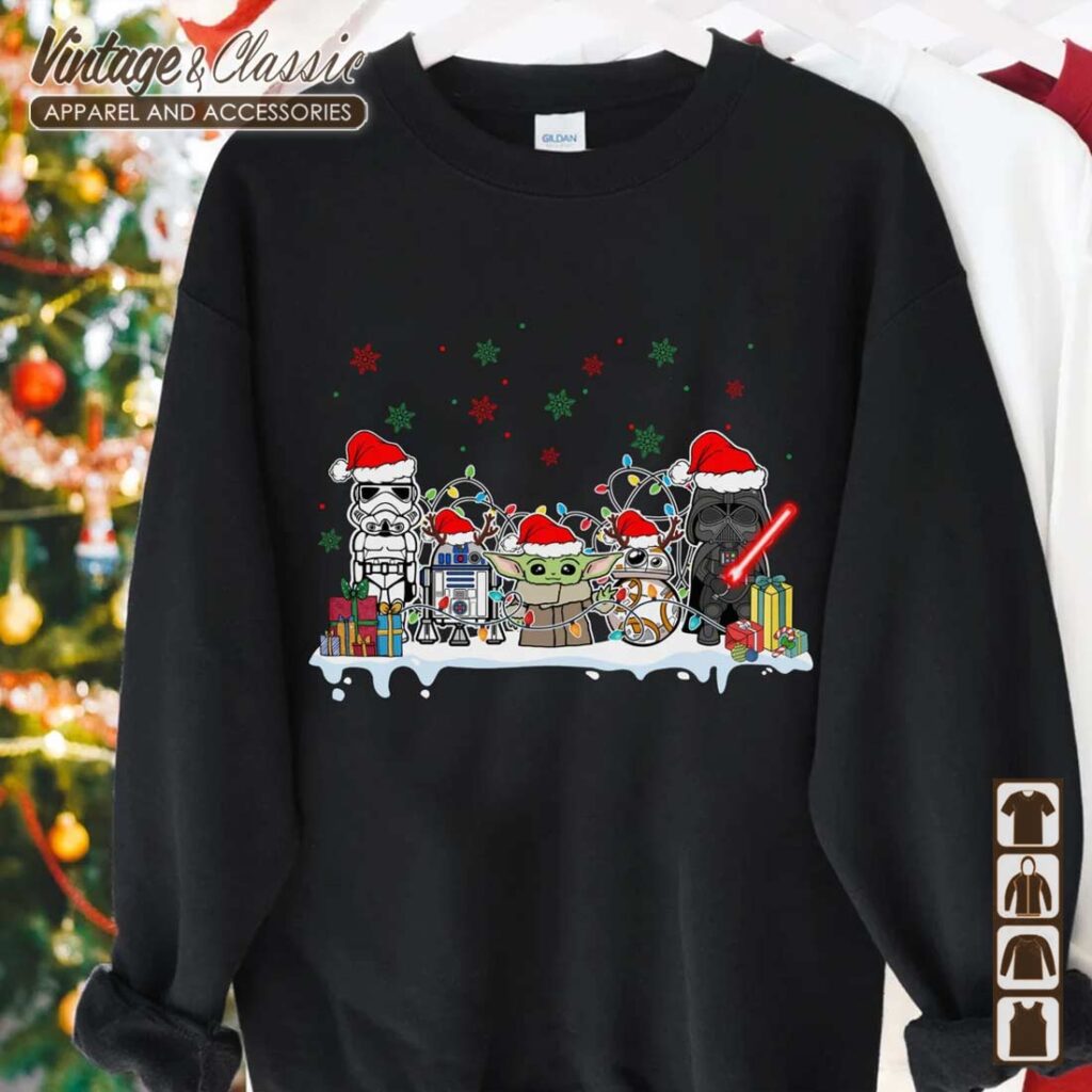 This Star Wars Christmas shirt is a must-have for any fan of the iconic Darth Vader and Stormtrooper! It features a festive design that combines the dark side of the Force with the holiday spirit. The image showcases Darth Vader and Stormtroopers in a Christmas-themed setting, making it a unique and fun way to celebrate the holidays. Whether you’re looking to add a touch of Star Wars magic to your Christmas decor or simply show off your fandom, this shirt is sure to be a hit.