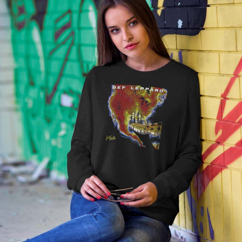 The artwork on this shirt is a vivid representation of Def Leppard’s First Strike, with striking imagery that reflects the band’s dynamic style. Released to commemorate their initial impact, this design pays homage to their early tours and the music that catapulted them to fame. The vibrant colors and intricate details make it a standout piece for any occasion. Whether you’re a seasoned fan or new to their music, this shirt is a celebration of Def Leppard’s enduring legacy.