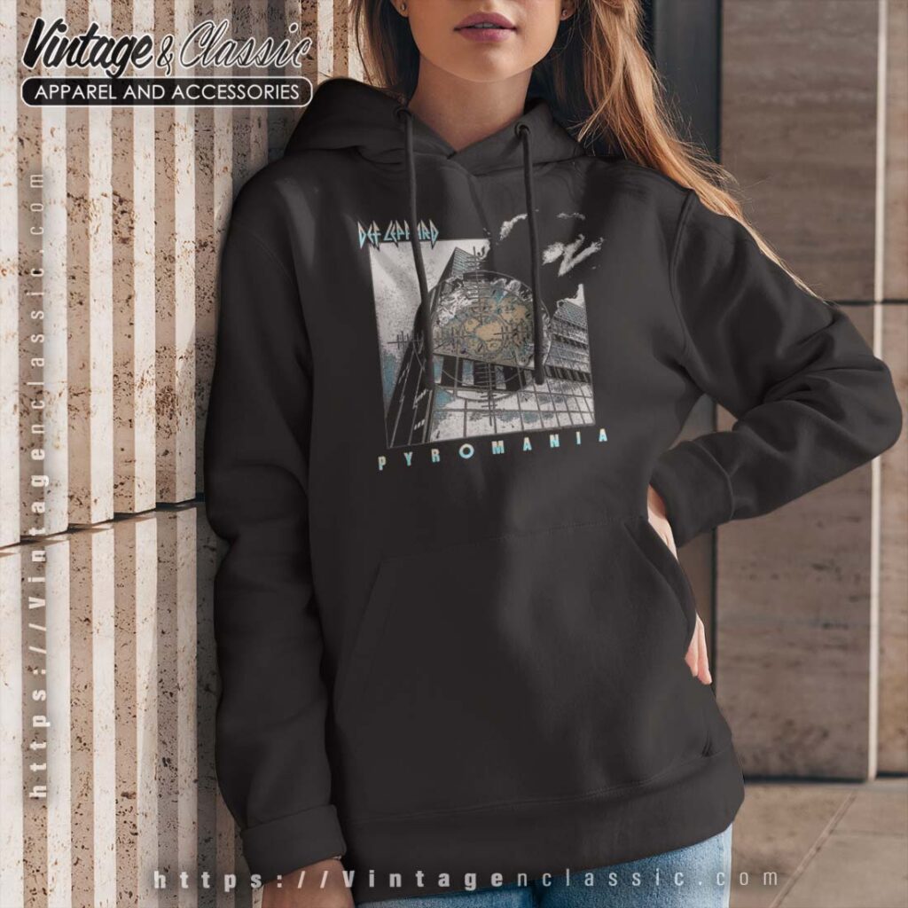 Related Keywords: Def Leppard Pyromania shirt; vintage rock band tee; 80s rock merchandise; iconic album apparel
