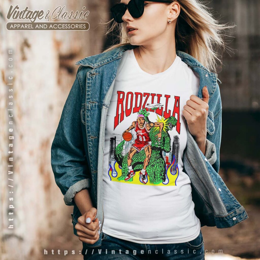 Dennis Rodman, the iconic and enigmatic basketball player, is known for his bold personality and his signature “Rodzilla” nickname. This iconic shirt celebrates his unique style and legacy. The “Rodzilla” design is a playful nod to his larger-than-life presence on the court.