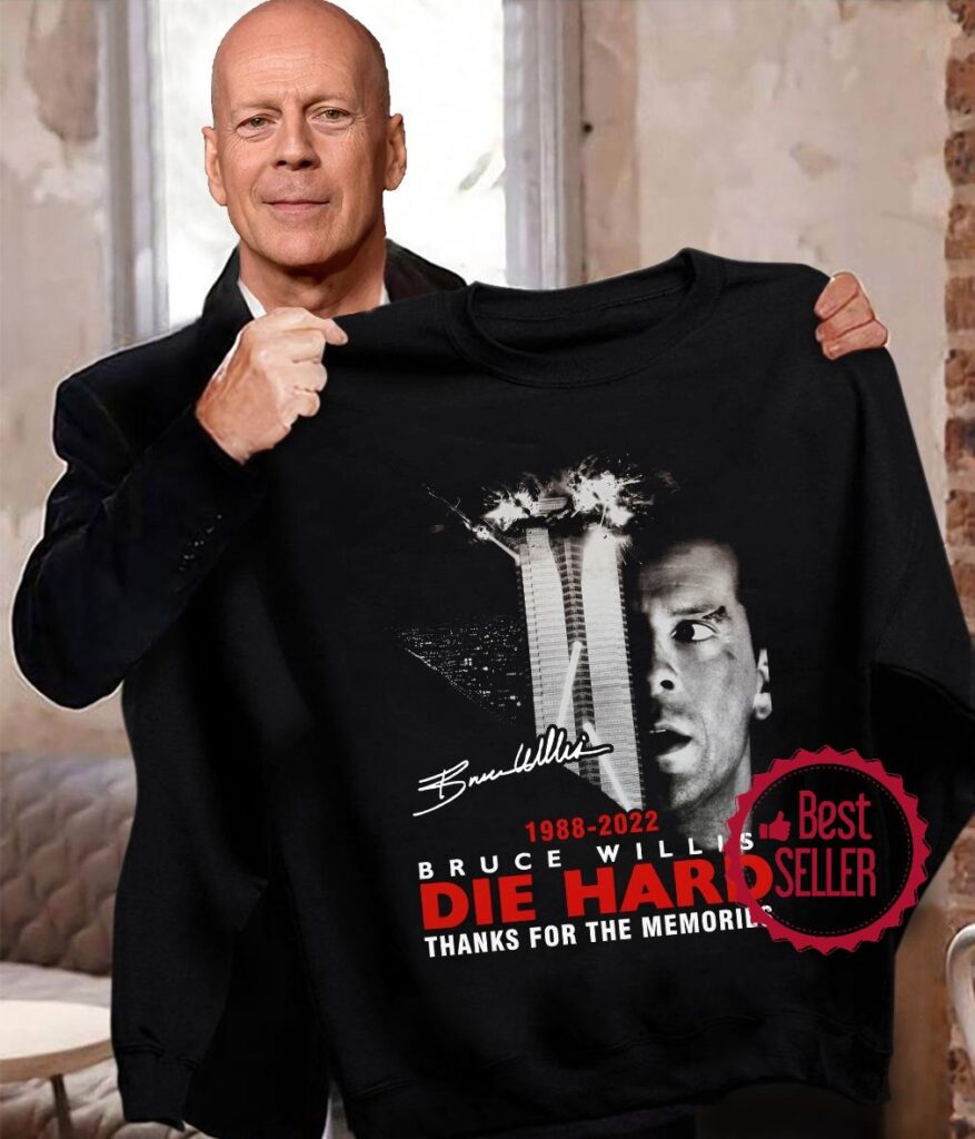 The “Die Hard Bruce Willis Signature, Thanks For The Memories 1988 2022” shirt is a tribute to the iconic action hero and his enduring legacy. This shirt celebrates Bruce Willis’s portrayal of John McClane in the “Die Hard” film franchise.