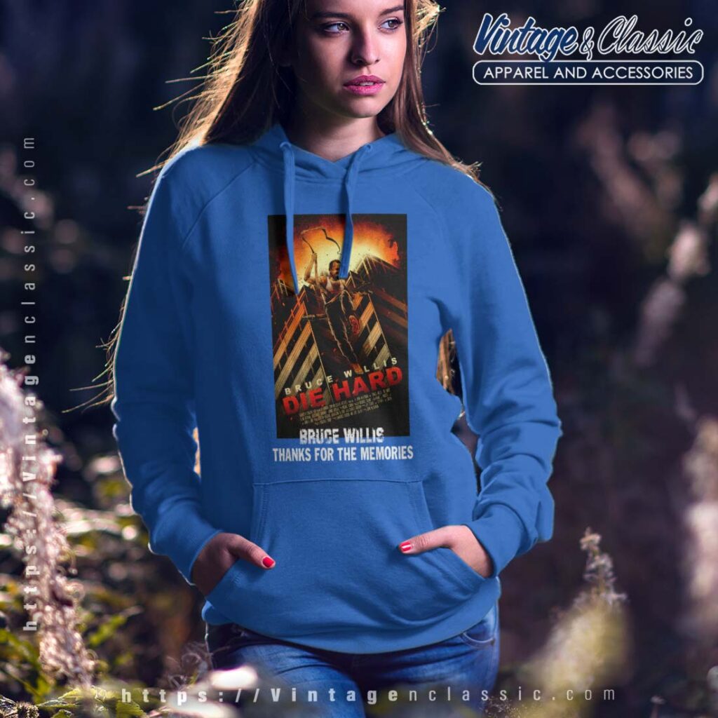 The “Die Hard: Thanks for the Memories” t-shirt is a tribute to the iconic action hero Bruce Willis. This shirt is a must-have for any die-hard fan of the film franchise. It features a nostalgic design that celebrates the legacy of John McClane and his unforgettable adventures. The shirt is a great way to show off your love for the movie and its star.