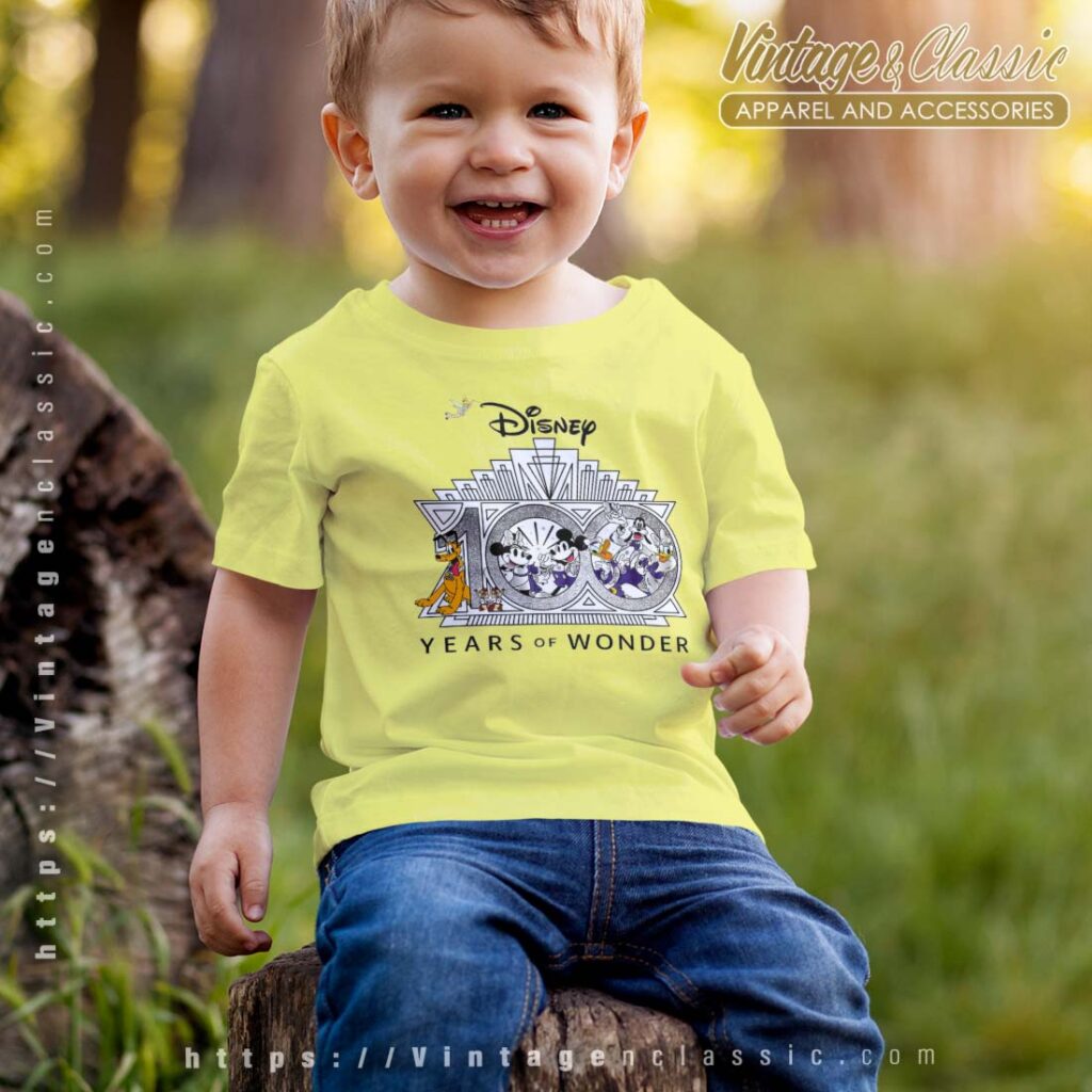 The “Disney 100 Years of Wonder” shirt is a commemorative piece celebrating the iconic Disney company’s centennial anniversary. This shirt is a tribute to the magic and nostalgia associated with Disney, featuring iconic imagery and characters that have captivated generations.