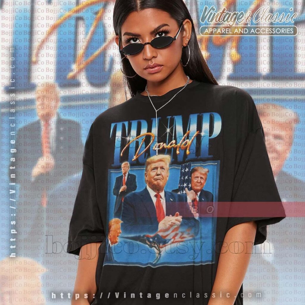 This vintage-style T-shirt features a design celebrating Donald Trump’s presidency. The design is reminiscent of the 1990s aesthetic, with a bold and eye-catching graphic that pays homage to the era. The “Donald Trump Retro 90s Shirt” is a statement piece for fans of the former president and a nostalgic reminder of a significant period in American history.