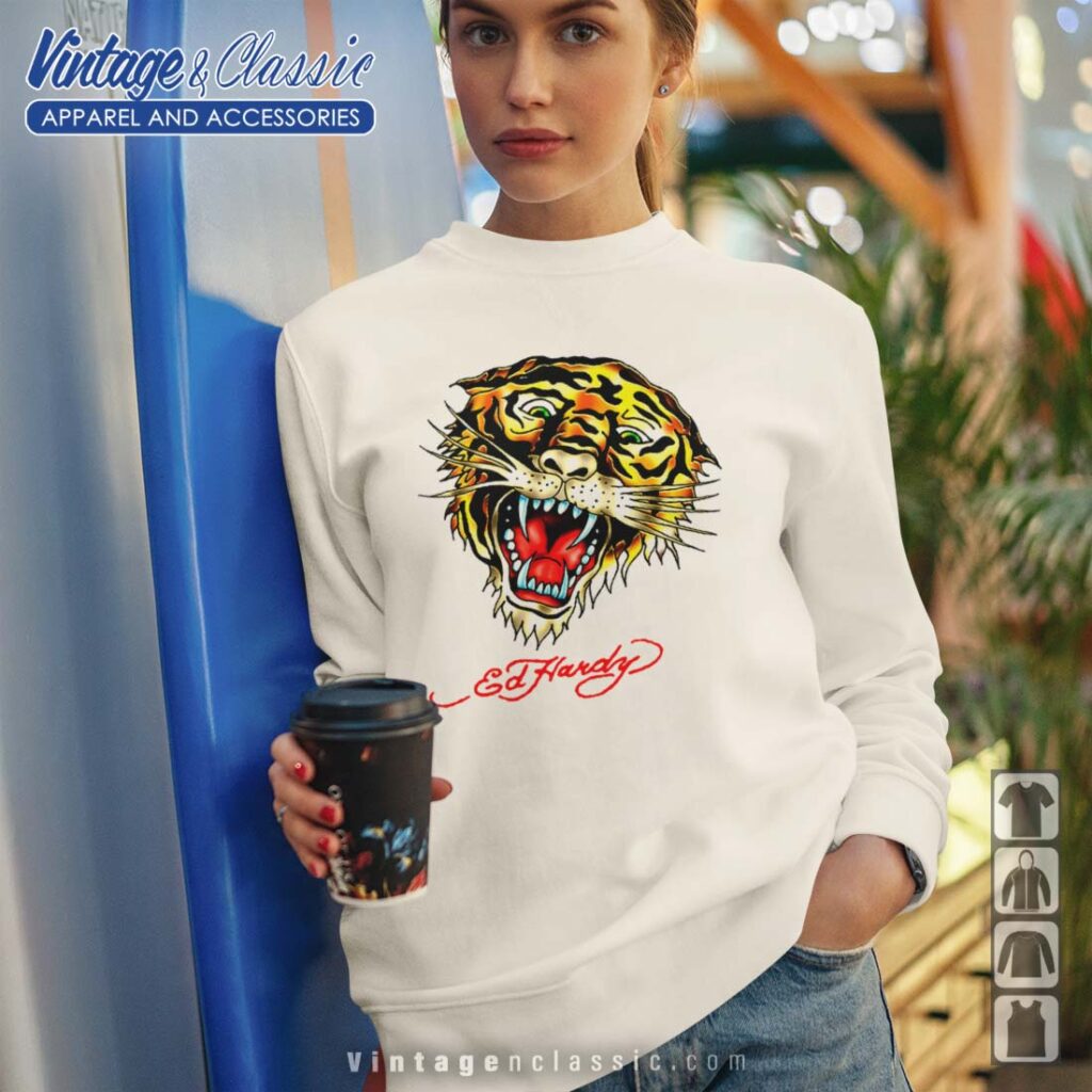 The Ed Hardy Tiger Shirt is a popular and iconic piece of clothing that embodies the spirit of the Ed Hardy brand. This graphic tee features a bold and eye-catching tiger design, often with a black and white color scheme. The design is a classic representation of Ed Hardy’s signature style, which is characterized by bold graphics and a rebellious attitude.