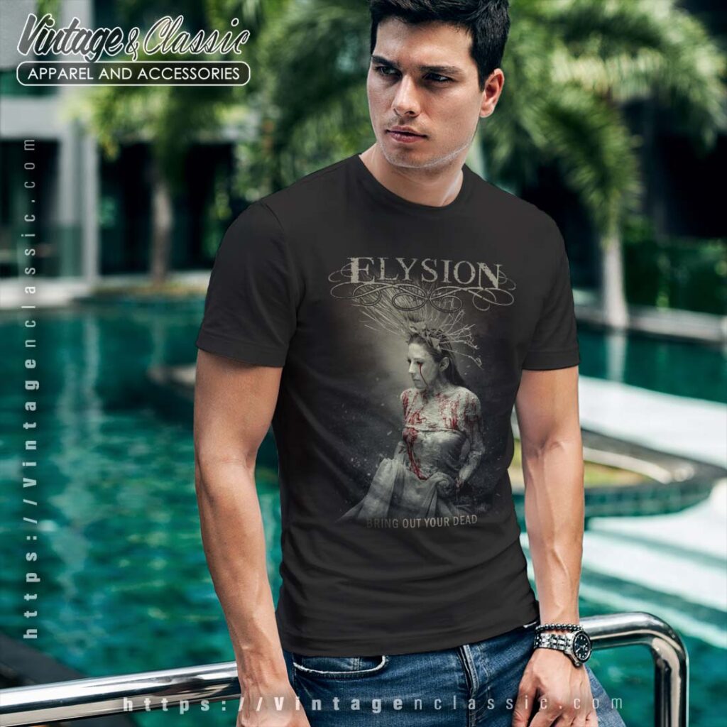 The “Bring Out Your Dead” shirt is a powerful statement for fans of Elysion’s new album. This limited-edition release is a testament to the band’s dedication to their fans and their unique musical style. The shirt is a visual representation of the album’s themes and the raw emotion that Elysion brings to their music.