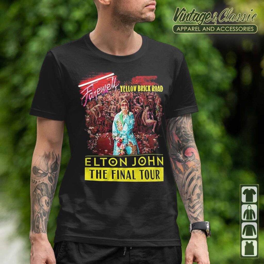 The Elton John “Farewell Yellow Brick Road” T-shirt is a must-have for any fan of the legendary singer. This iconic design celebrates his final tour, a momentous occasion that brought together music lovers and fans from all walks of life. The shirt features a striking image of Elton John’s iconic yellow brick road, a symbol of his musical journey and enduring legacy.