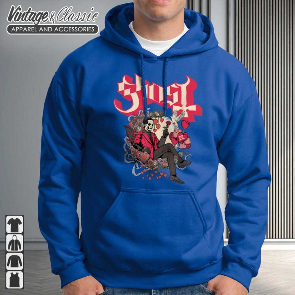 The shirt features a charming illustration of a ghost with Cupid’s bow and arrow, embodying the playful spirit of Valentine’s Day and Halloween. It’s a unique and fun way to celebrate the holiday with a touch of ghostly charm.