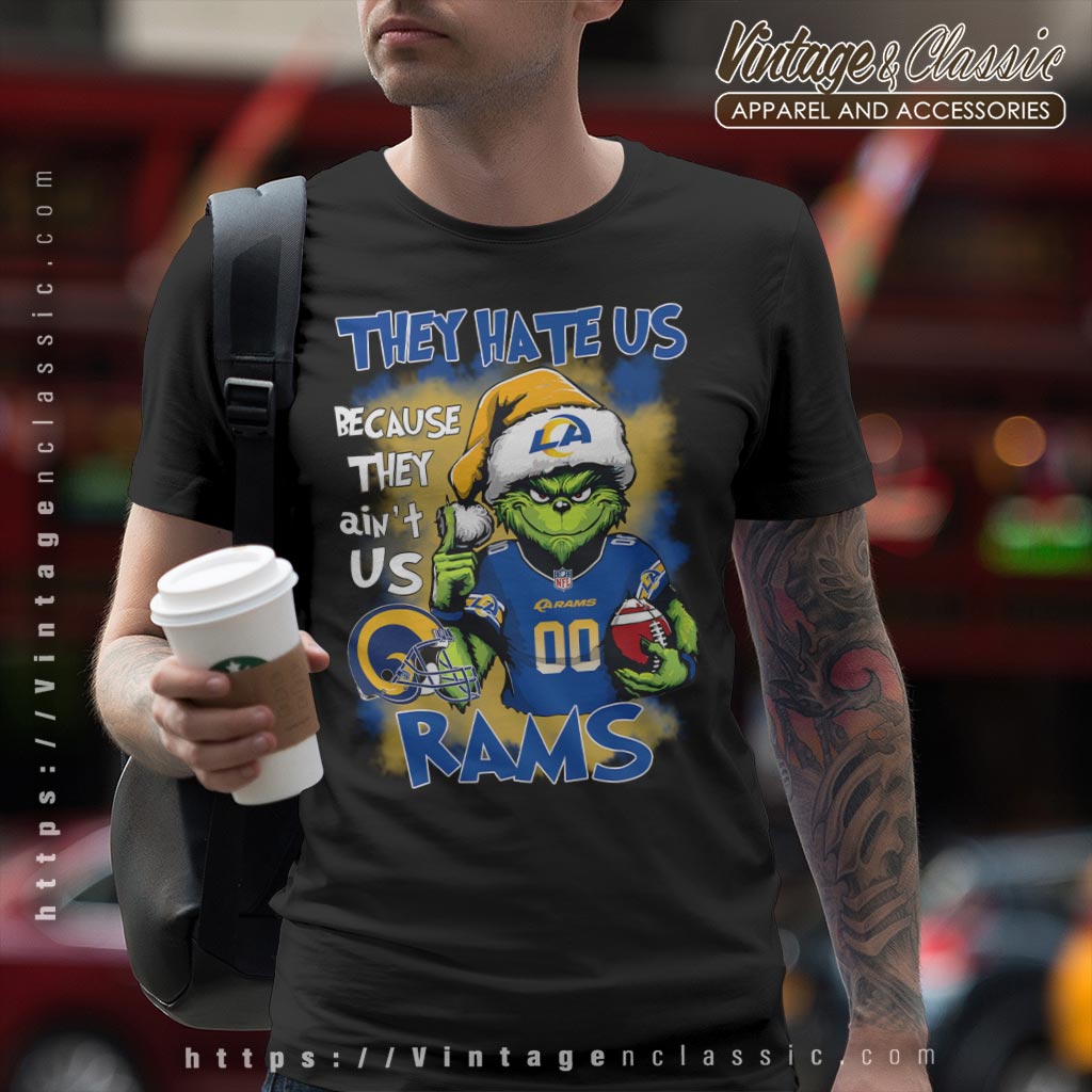 related keywords: Grinch Los Angeles Rams Christmas shirt, They Hate Us Rams holiday tee, Los Angeles Rams Santa hat Grinch shirt, Grinch football Rams fan shirt
