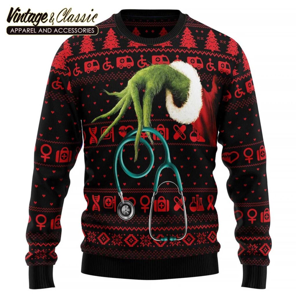This unique design is a great way to show off your festive spirit while also paying homage to the beloved Grinch character. Whether you’re a nurse yourself or just a fan of the holiday season, this sweater is a must-have for any Grinch fan.