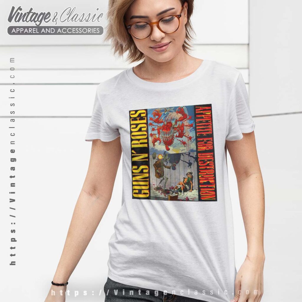 The Guns N’ Roses “Appetite for Destruction” shirt is a highly sought-after piece of rock memorabilia. This iconic shirt is a must-have for any fan of the legendary band. It features a striking image of the band’s iconic logo, which is instantly recognizable and evokes a sense of nostalgia for the album’s release.