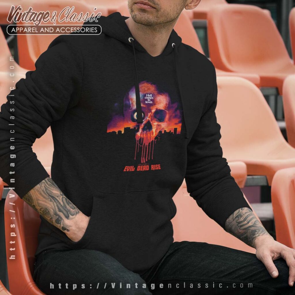 The “Hell Comes to Town” Evil Dead Rise shirt is a must-have for any fan of the iconic horror franchise. This shirt is a tribute to the 2023 film “Evil Dead Rise,” which is a terrifying and thrilling story that takes the franchise to a new level. The shirt features a striking image of the film’s iconic demon, showcasing its terrifying presence.