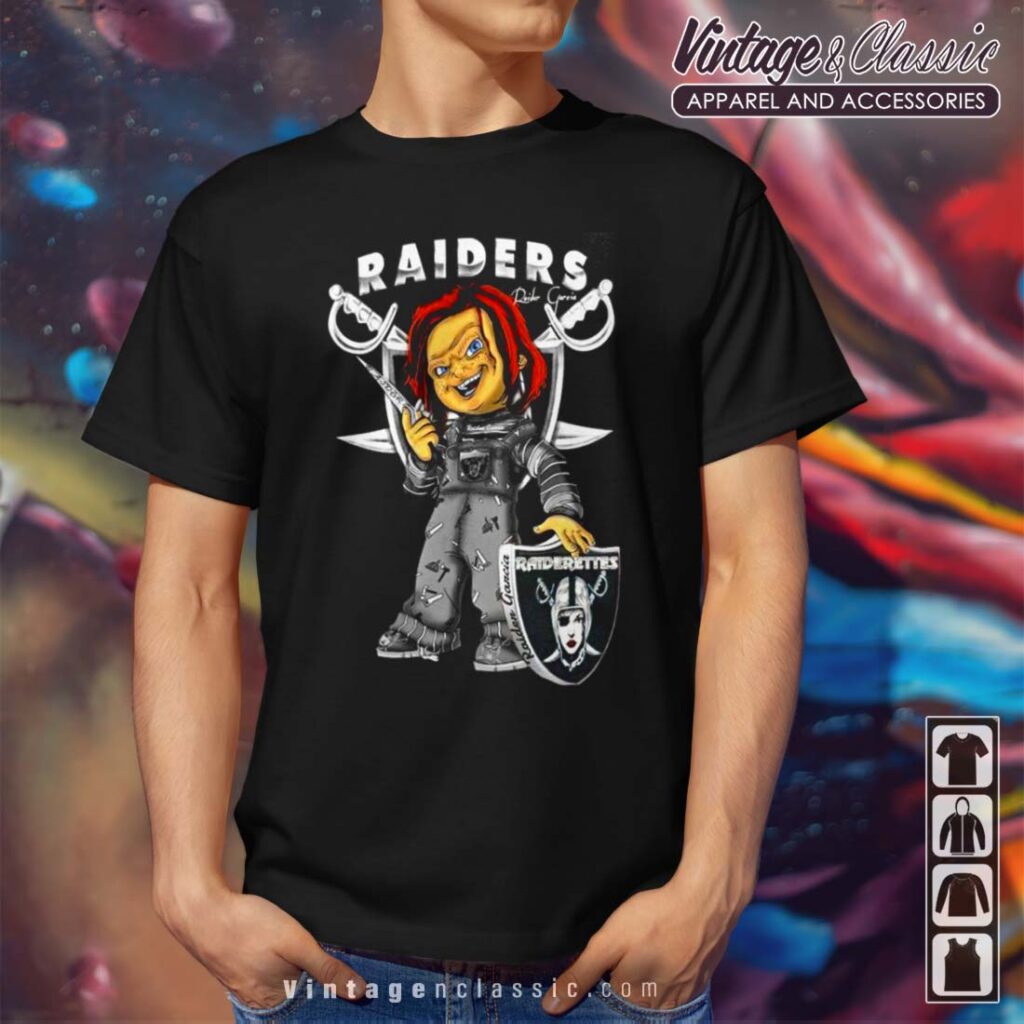 The “Horror Chucky Las Vegas Raiders Garcia Shirt” is a unique and eye-catching piece of apparel for fans of horror and the Las Vegas Raiders. This shirt features a prominent image of the iconic horror character Chucky, known for his terrifying presence in the “Child’s Play” film franchise. The shirt is a playful nod to the Raiders’ team spirit and the horror genre, making it a statement piece for fans who enjoy a bit of spooky fun.