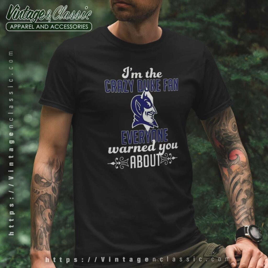 The “I’m The Crazy Duke Fan Shirt” is a playful and passionate declaration of love for the Duke University basketball team. This shirt is a must-have for any die-hard Duke fan, offering a fun and bold way to show their allegiance. It’s a statement piece that celebrates Duke’s rich history and iconic blue and white colors.