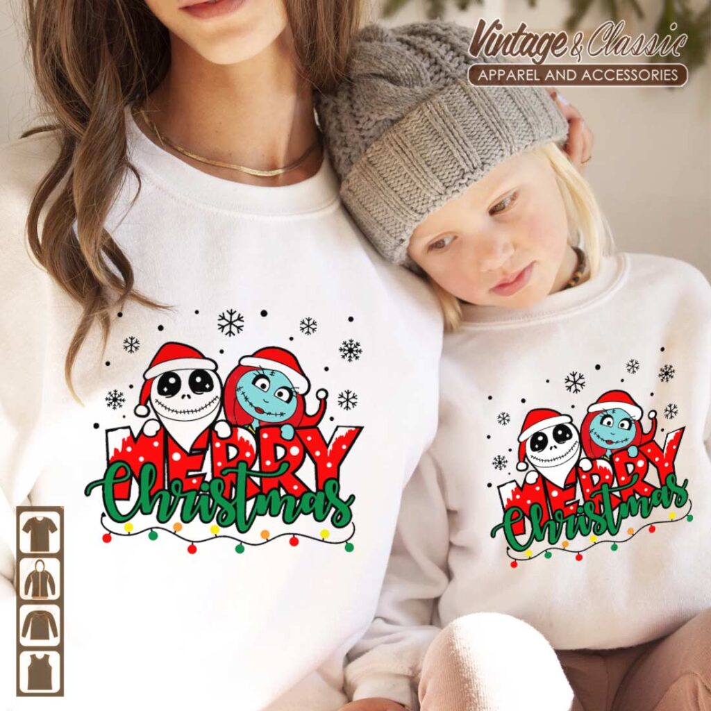 This is a festive and adorable shirt featuring the beloved characters Jack Skellington and Sally from “The Nightmare Before Christmas”! The design is a classic representation of the iconic duo, perfect for spreading holiday cheer.
