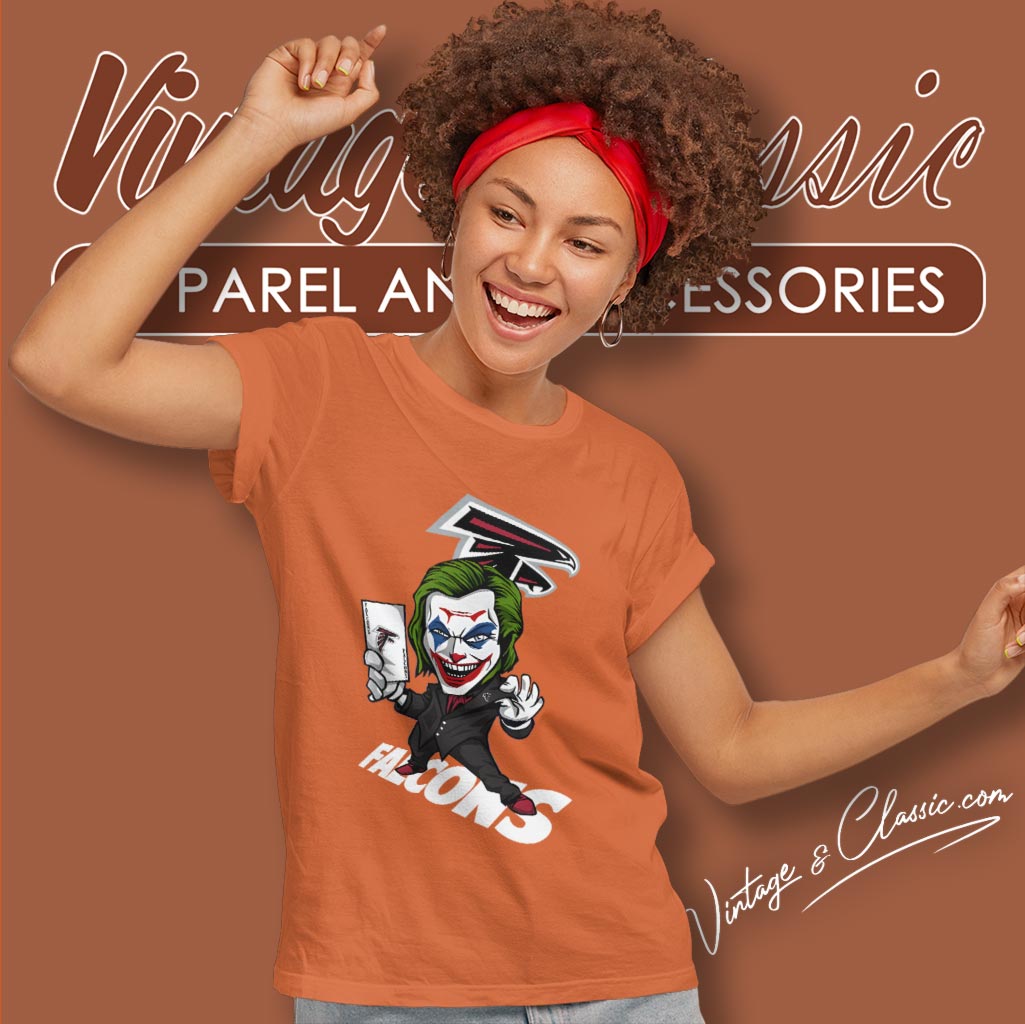 Related keywords: Joker Atlanta Falcons fan apparel; Atlanta Falcons Joker themed shirt; Joker sports graphic tee; Falcons game day Joker shirt