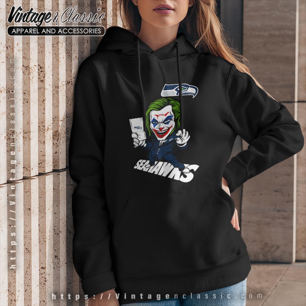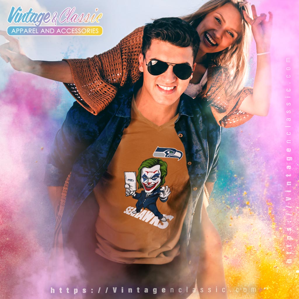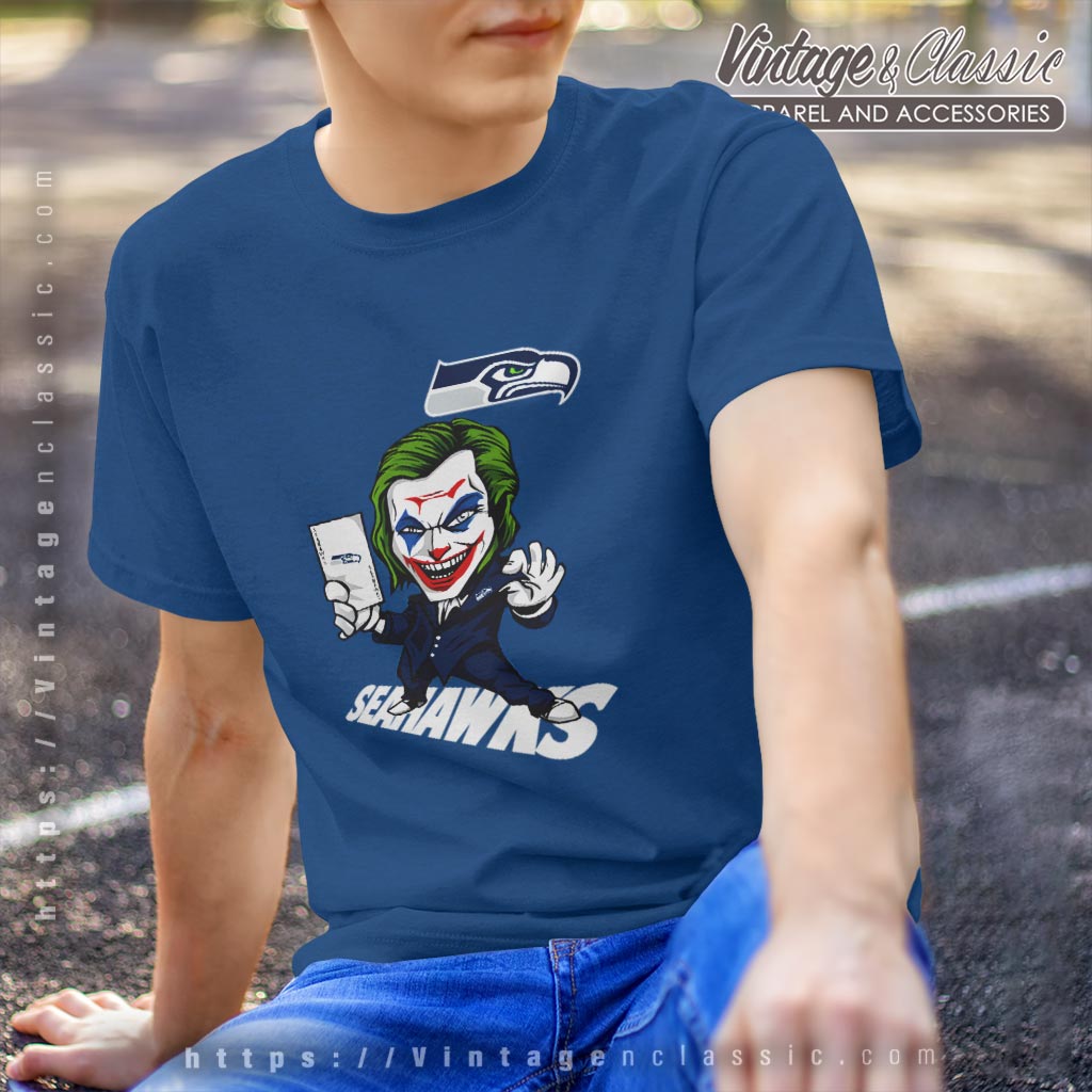 Related keywords: Joker Seattle Seahawks merchandise; Seahawks Joker apparel; Seattle Seahawks fan gear; Joker-themed Seahawks shirt.