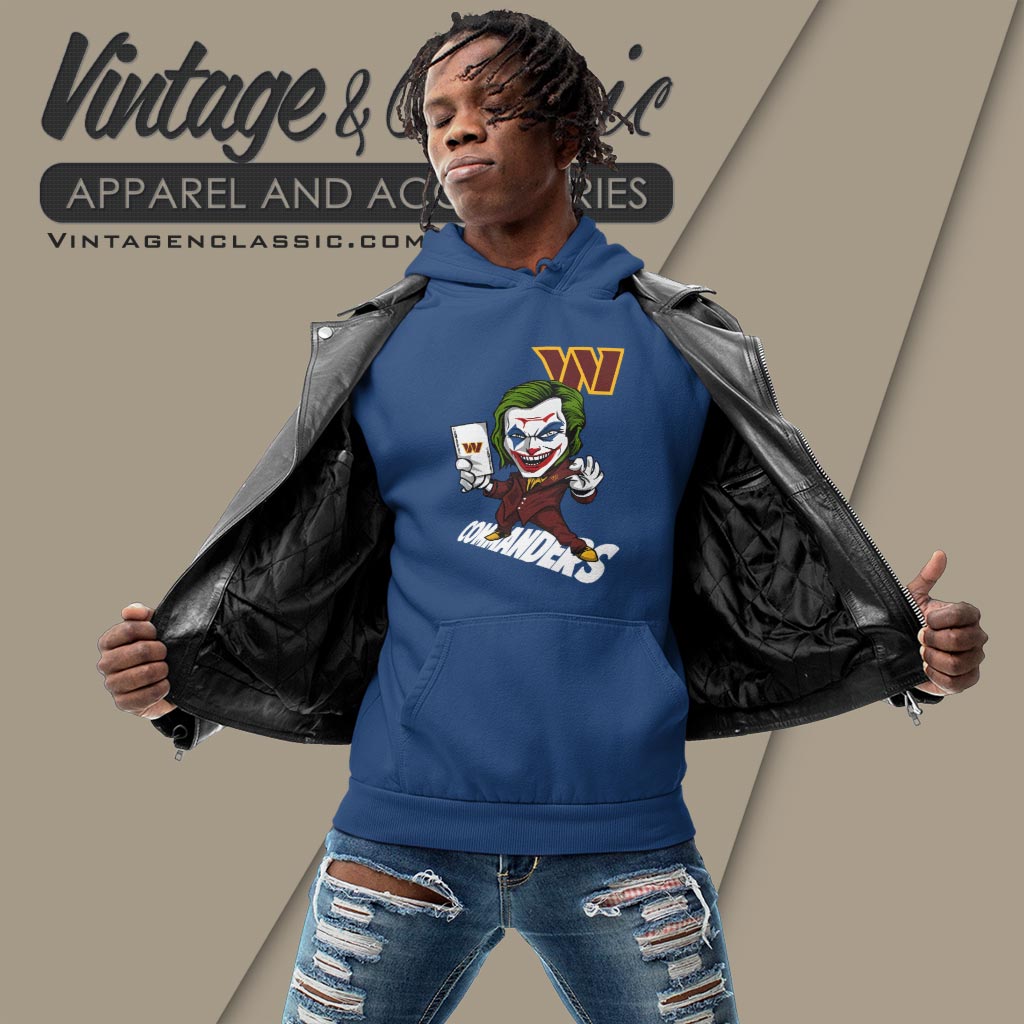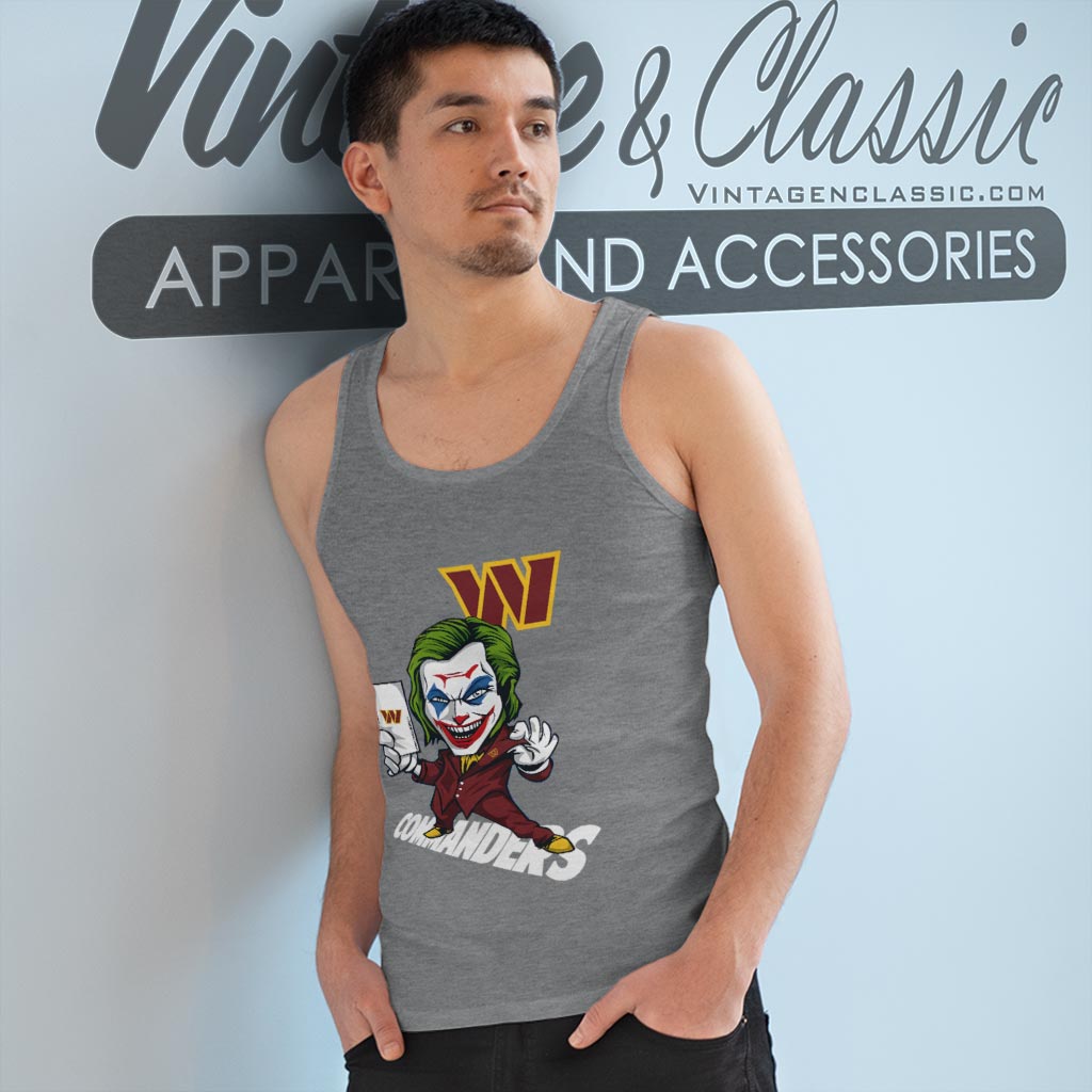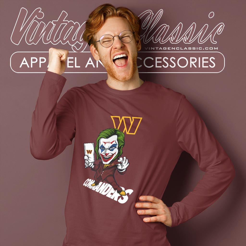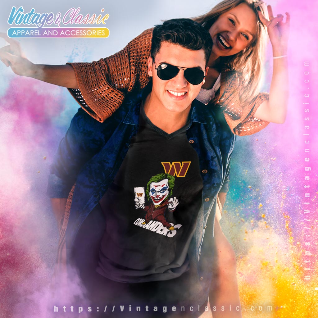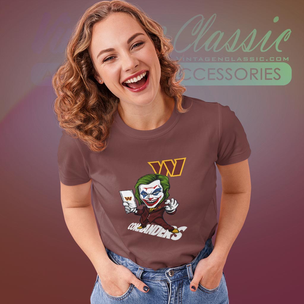 Related keywords: Joker sports shirt; Washington Commanders fan apparel; Joker and Commanders design; Comic book sports tee