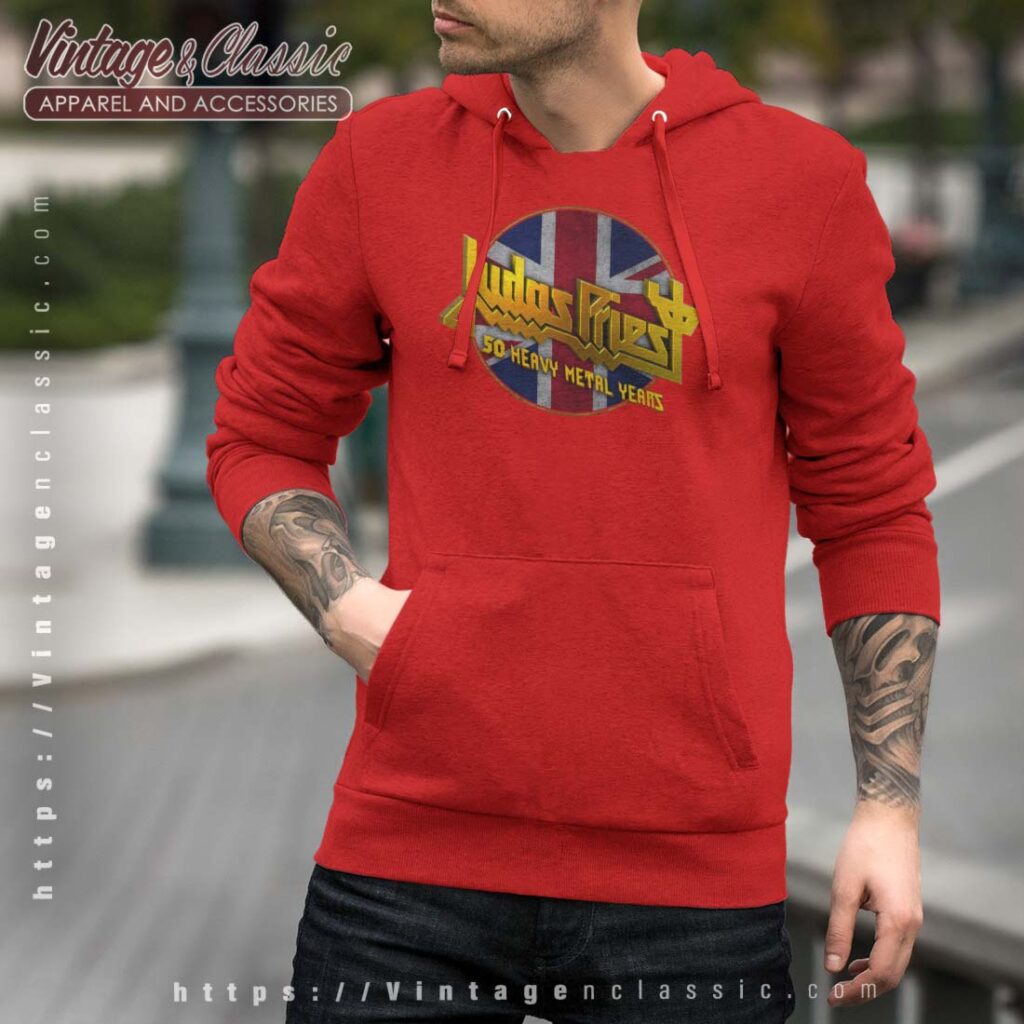 The Judas Priest 50 Years Union Jack Circle Shirt is a tribute to the legendary heavy metal band’s 50th anniversary. This shirt celebrates their iconic status in the music world with a classic Union Jack design. It’s a must-have for any die-hard Priest fan.