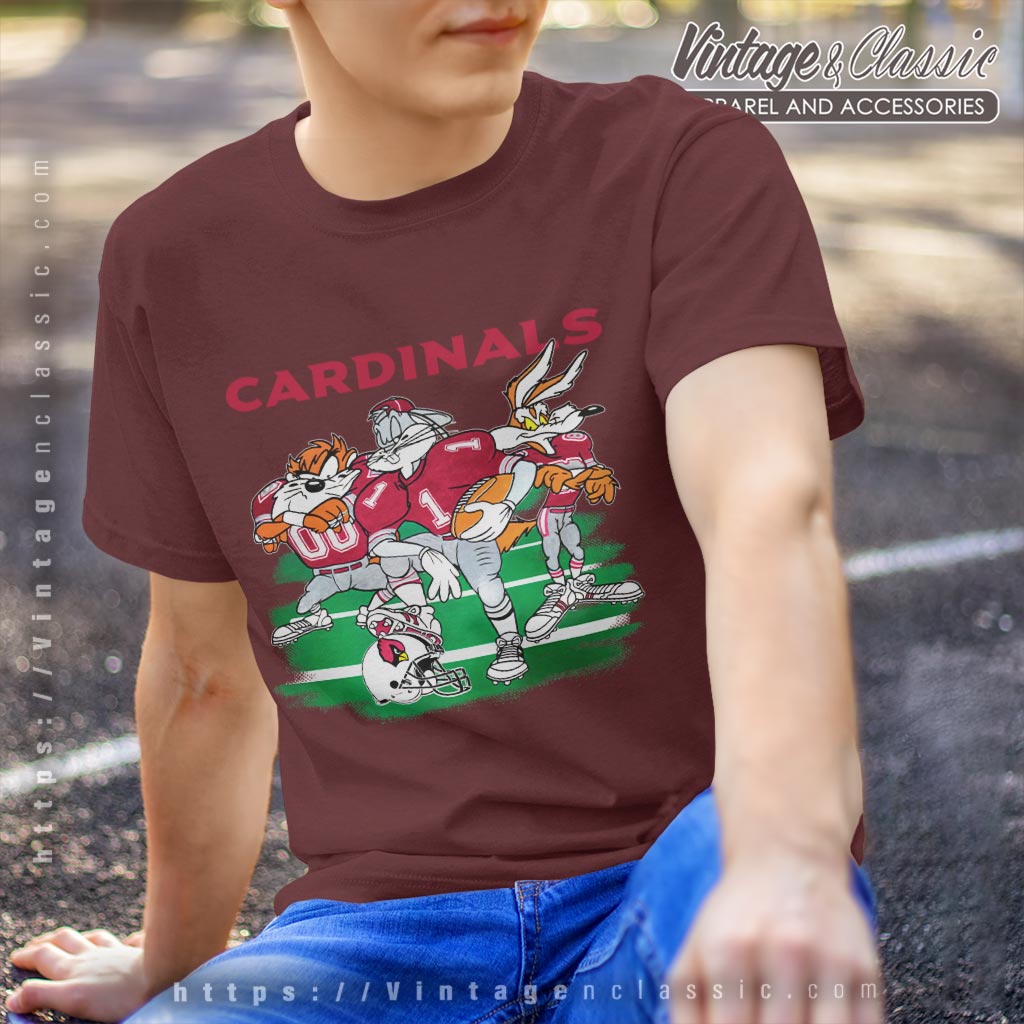 related keywords: Looney Tunes Arizona Cardinals shirt, Cardinals cartoon football tee, Bugs Bunny Taz Wile E. Coyote Cardinals shirt, vintage Looney Tunes Cardinals apparel