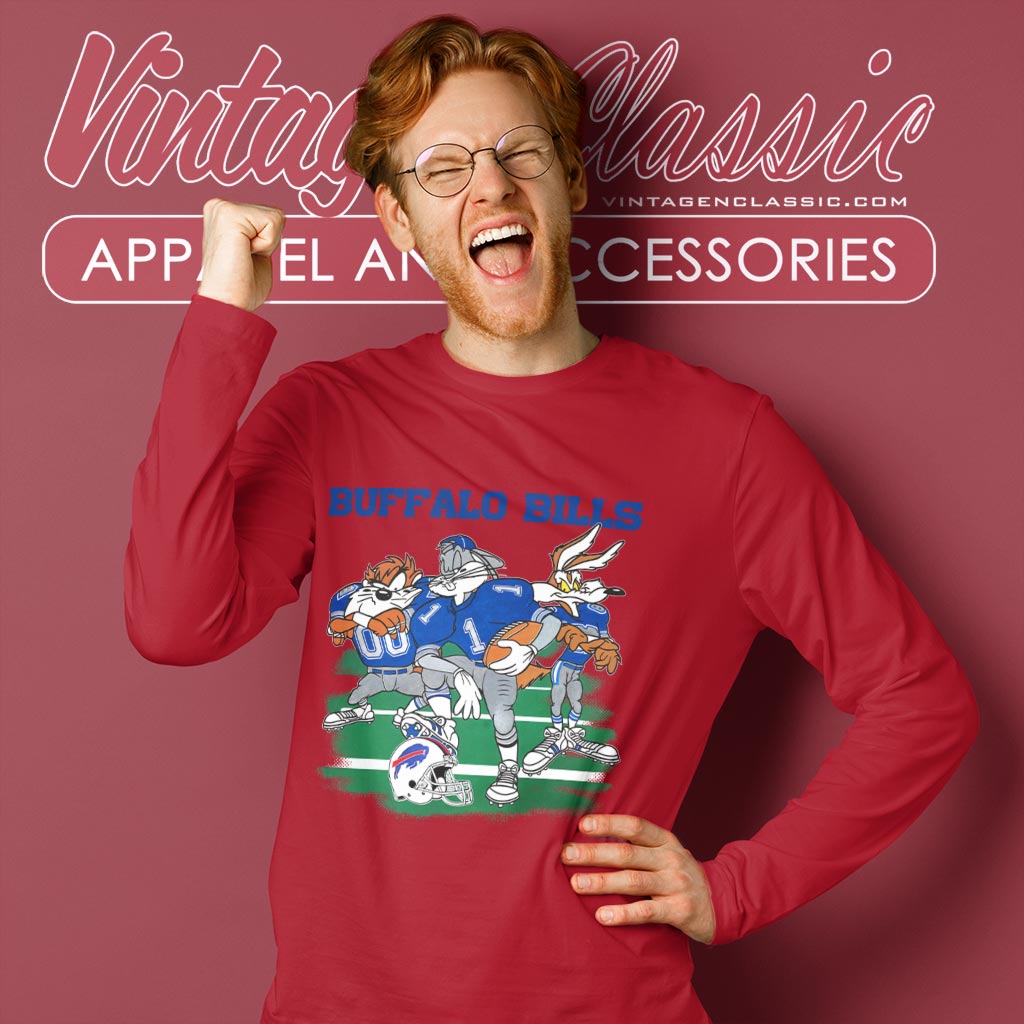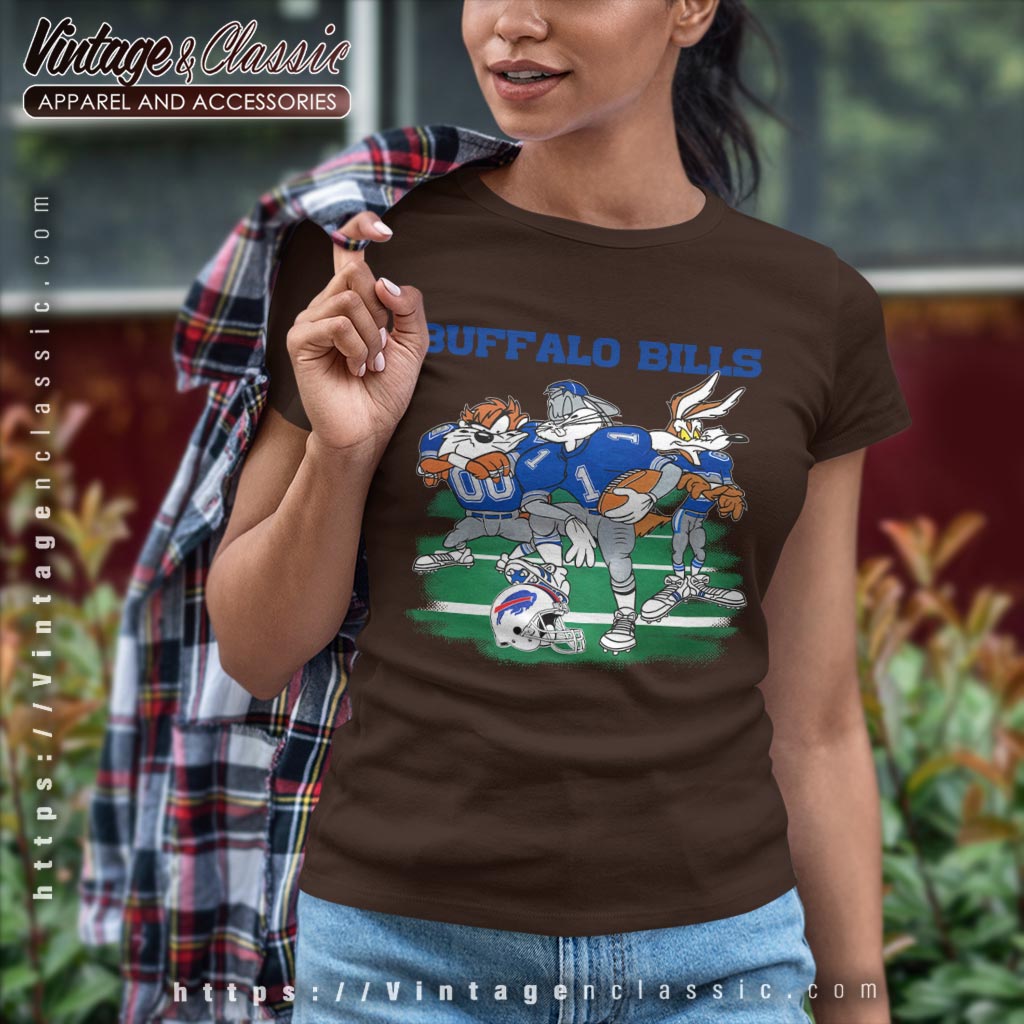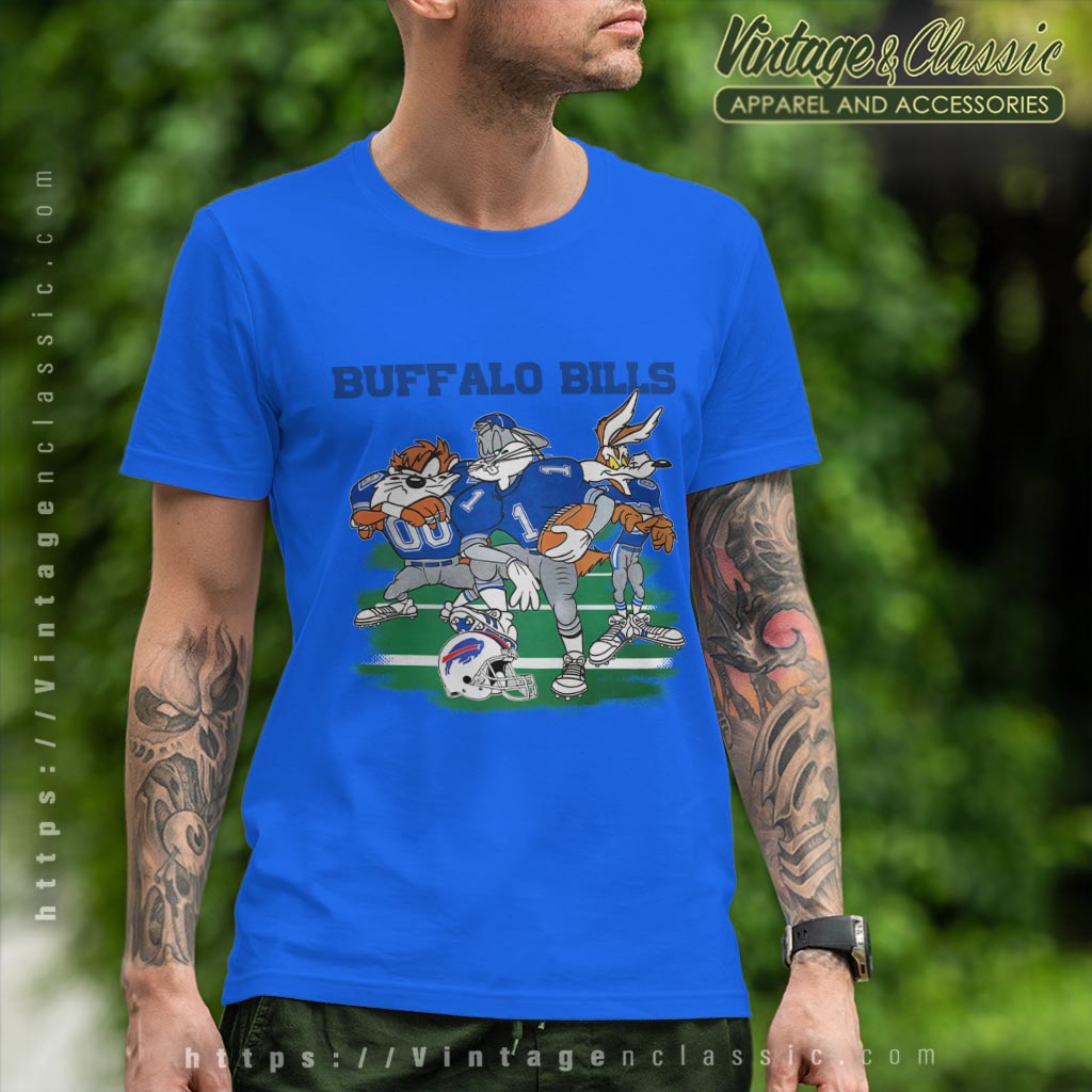 related keywords: Looney Tunes Buffalo Bills shirt, Bugs Bunny Taz Wile E. Coyote Bills tee, vintage cartoon Buffalo Bills shirt, retro Looney Tunes Bills apparel