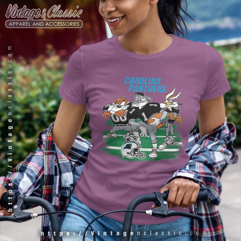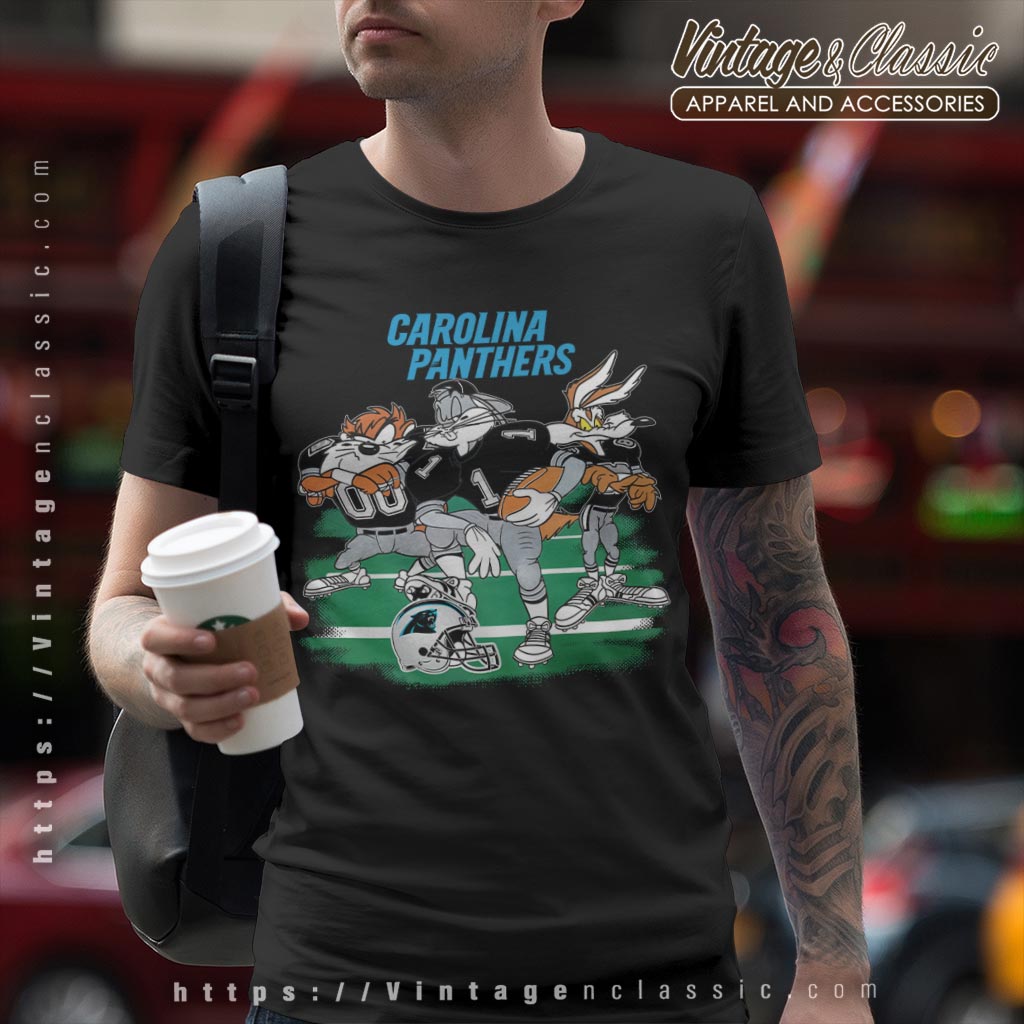 related keywords: Looney Tunes Carolina Panthers shirt, Bugs Bunny Taz Wile E. Coyote Panthers tee, vintage cartoon Panthers shirt, retro Looney Tunes Panthers apparel