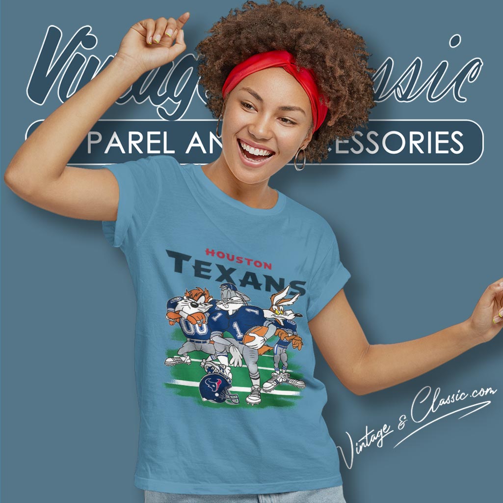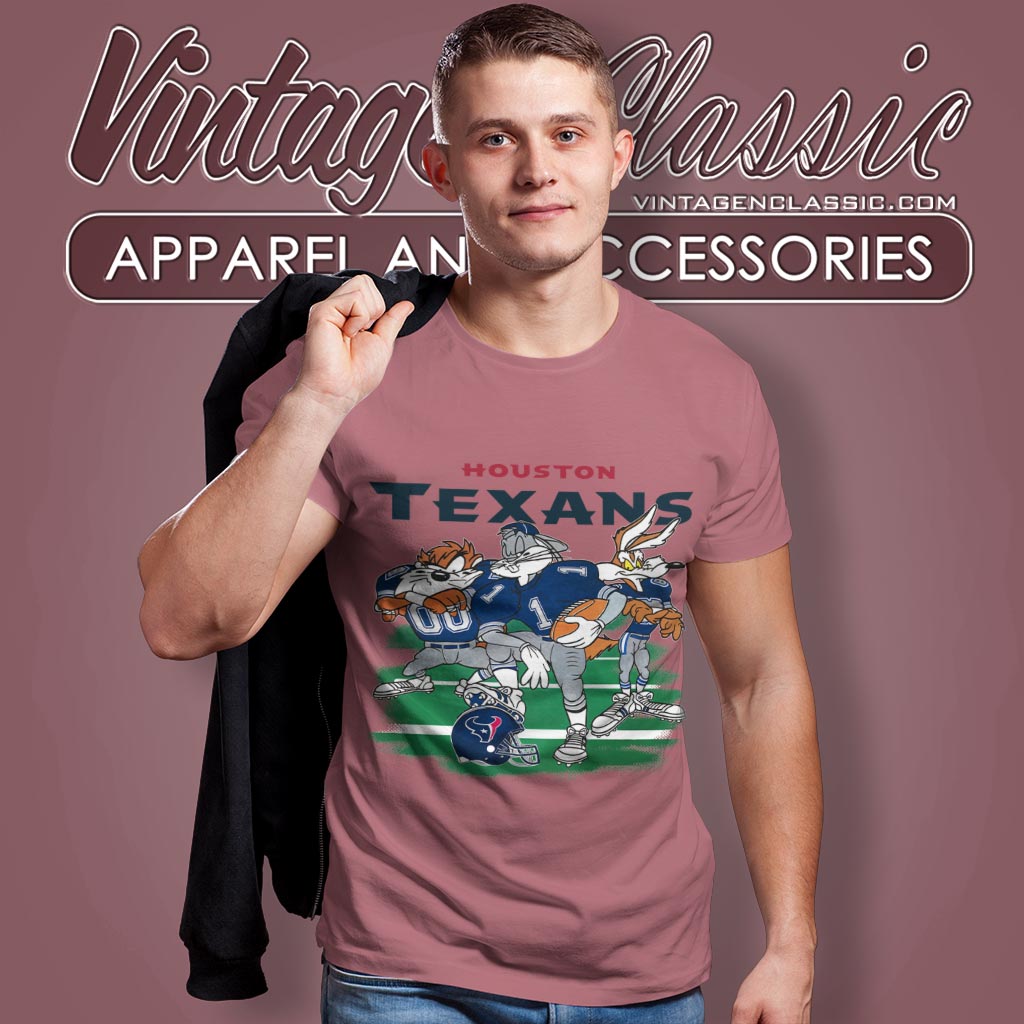 related keywords: Looney Tunes Houston Texans shirt, Bugs Bunny Taz Wile E. Coyote Texans tee, vintage cartoon Texans shirt, retro Looney Tunes Texans apparel