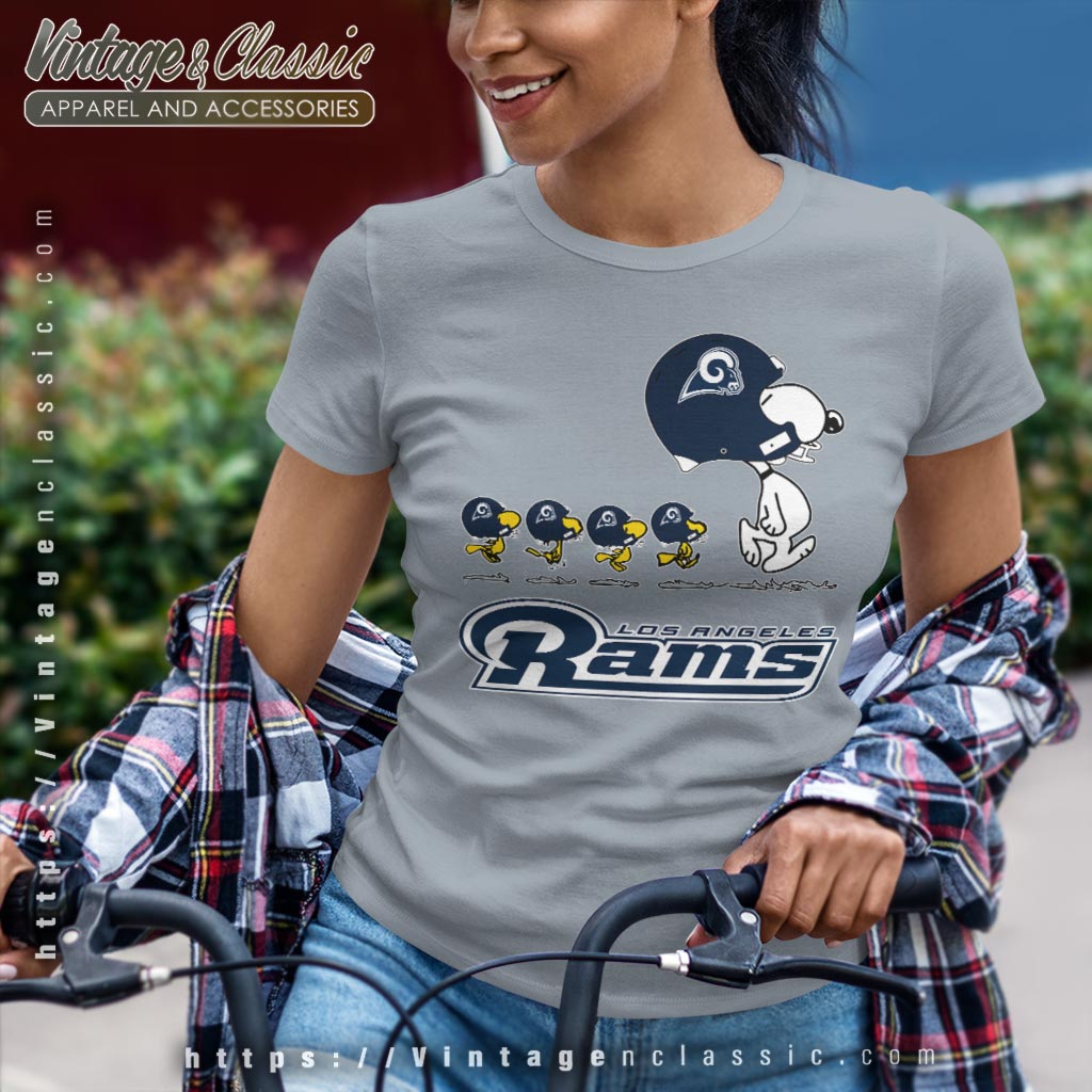 Related keywords: Los Angeles Rams merchandise; Snoopy Rams shirt; Woodstock Rams graphic tee; Rams fan apparel.