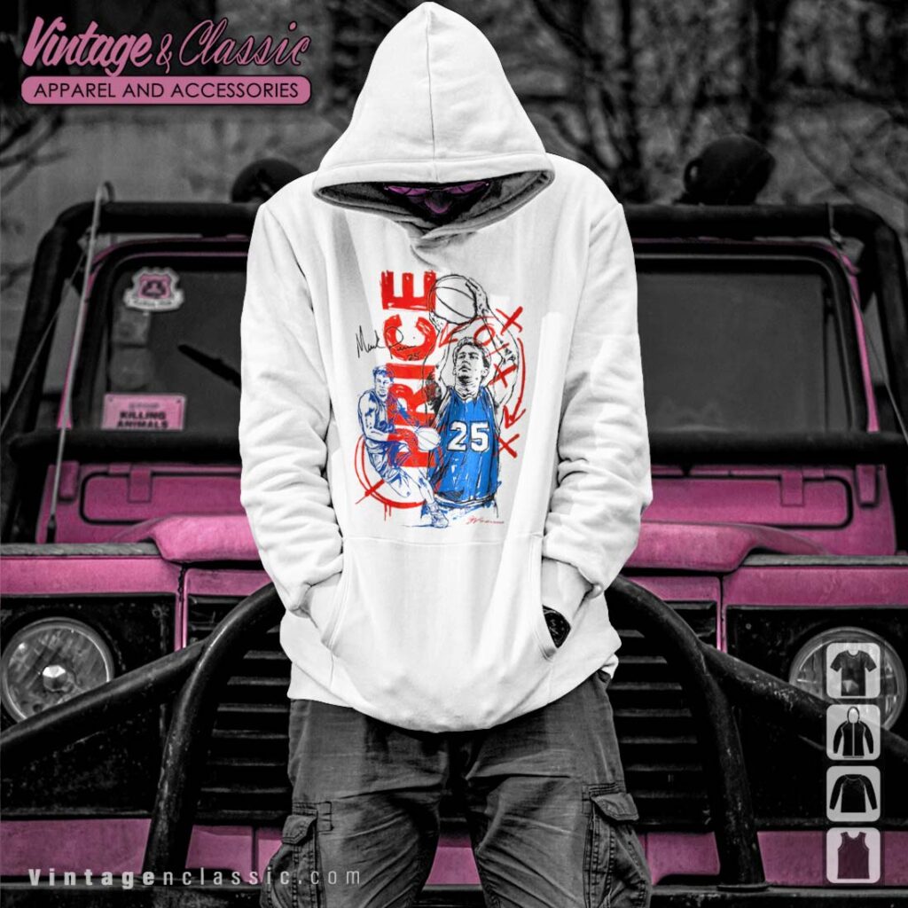 This is a vintage-style T-shirt featuring artwork by Mark Price, a renowned artist known for his iconic basketball illustrations. The design is vibrant and eye-catching, making it a great choice for fans of the sport and Mark Price’s work.